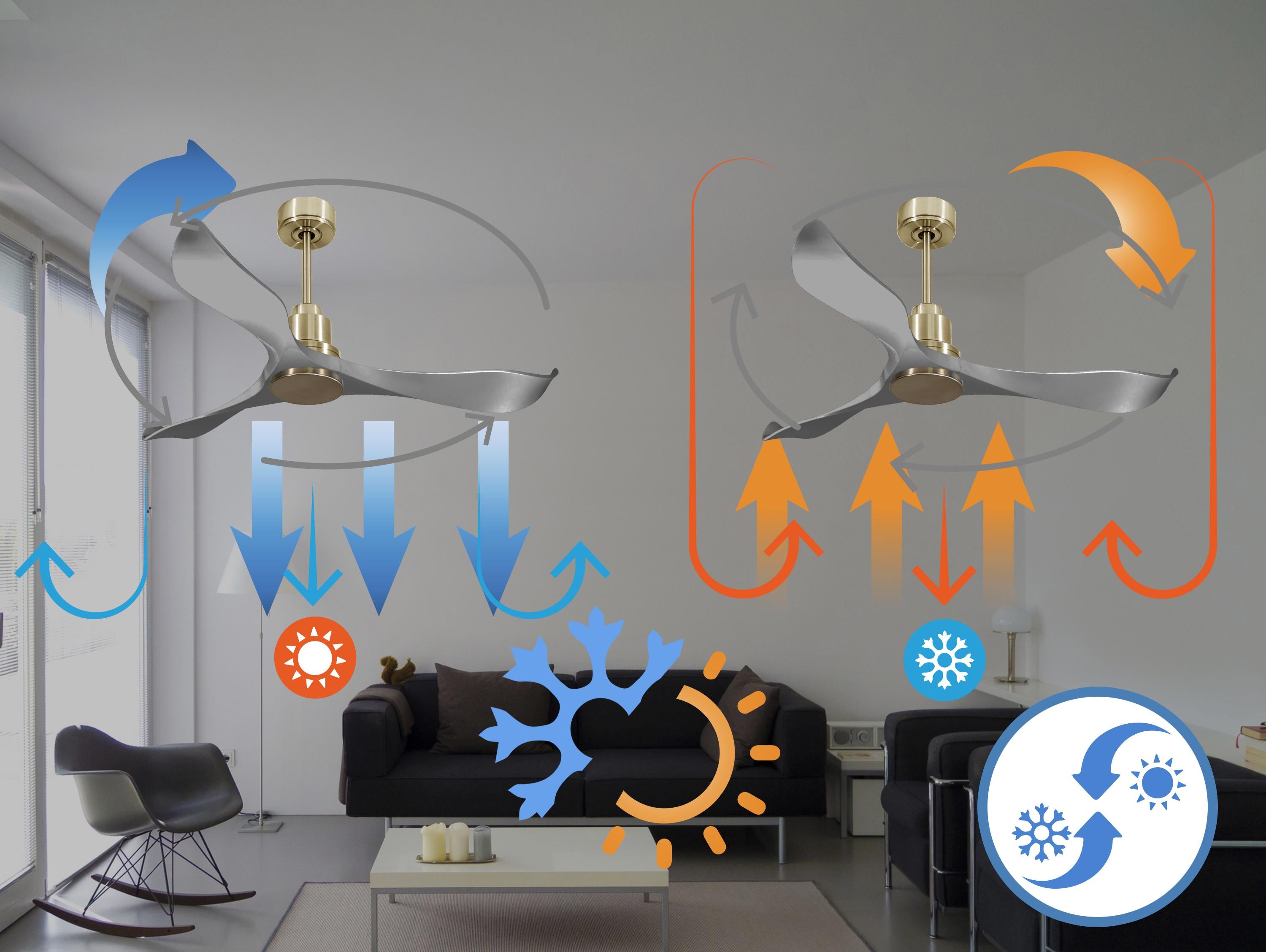 Ventilador de techo Modo Invierno/Verano Termostato Wifi Motor DC Techos Inclinados Mando a Distancia Memoria Vendible Shopify (AUTOMATICO)
