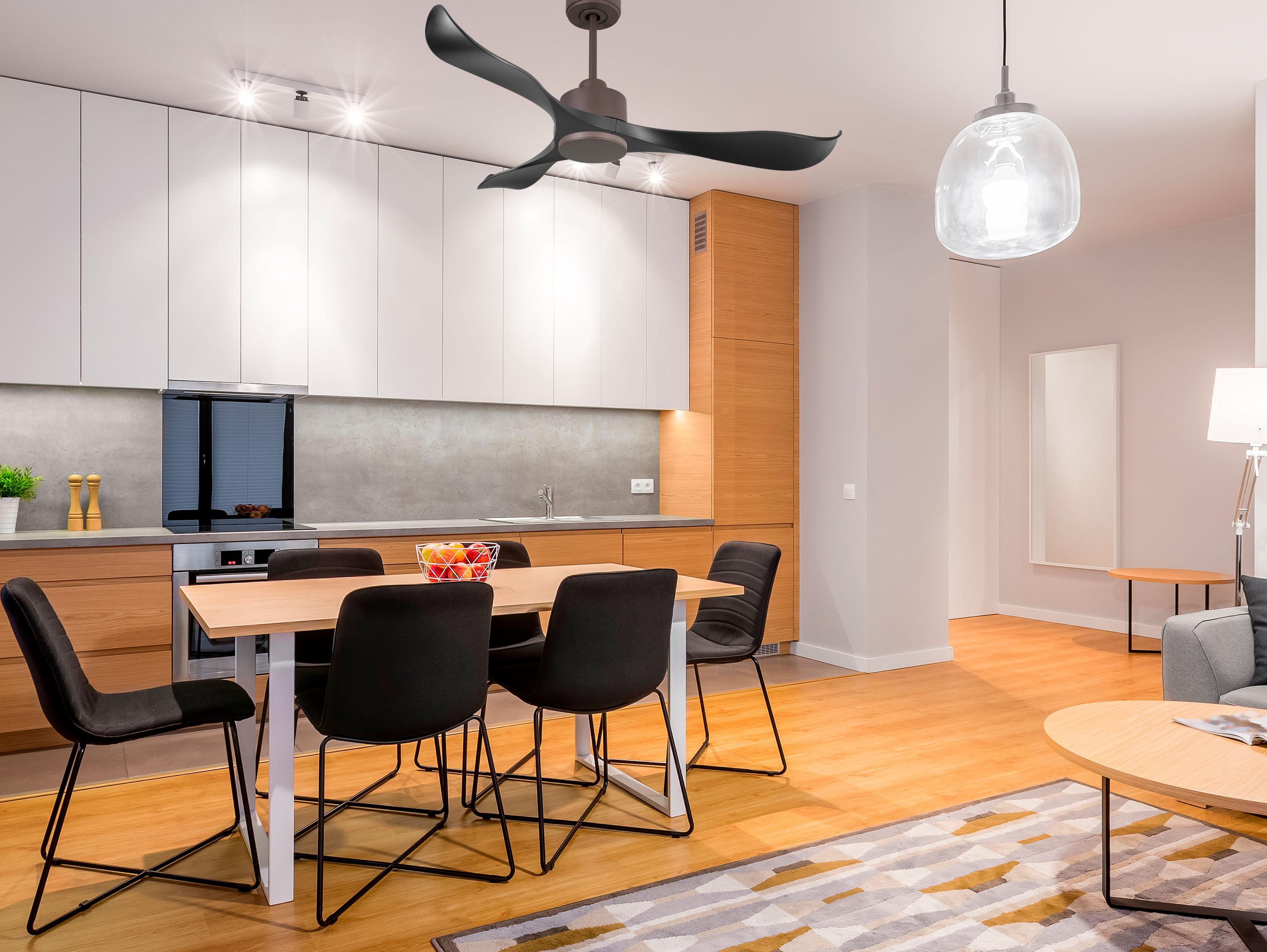 Ventilador de techo Reversible Termostato Wifi Motor DC Techos Inclinados Mando a Distancia Adaptador 2/3 Aspas Hypersilence Memoria