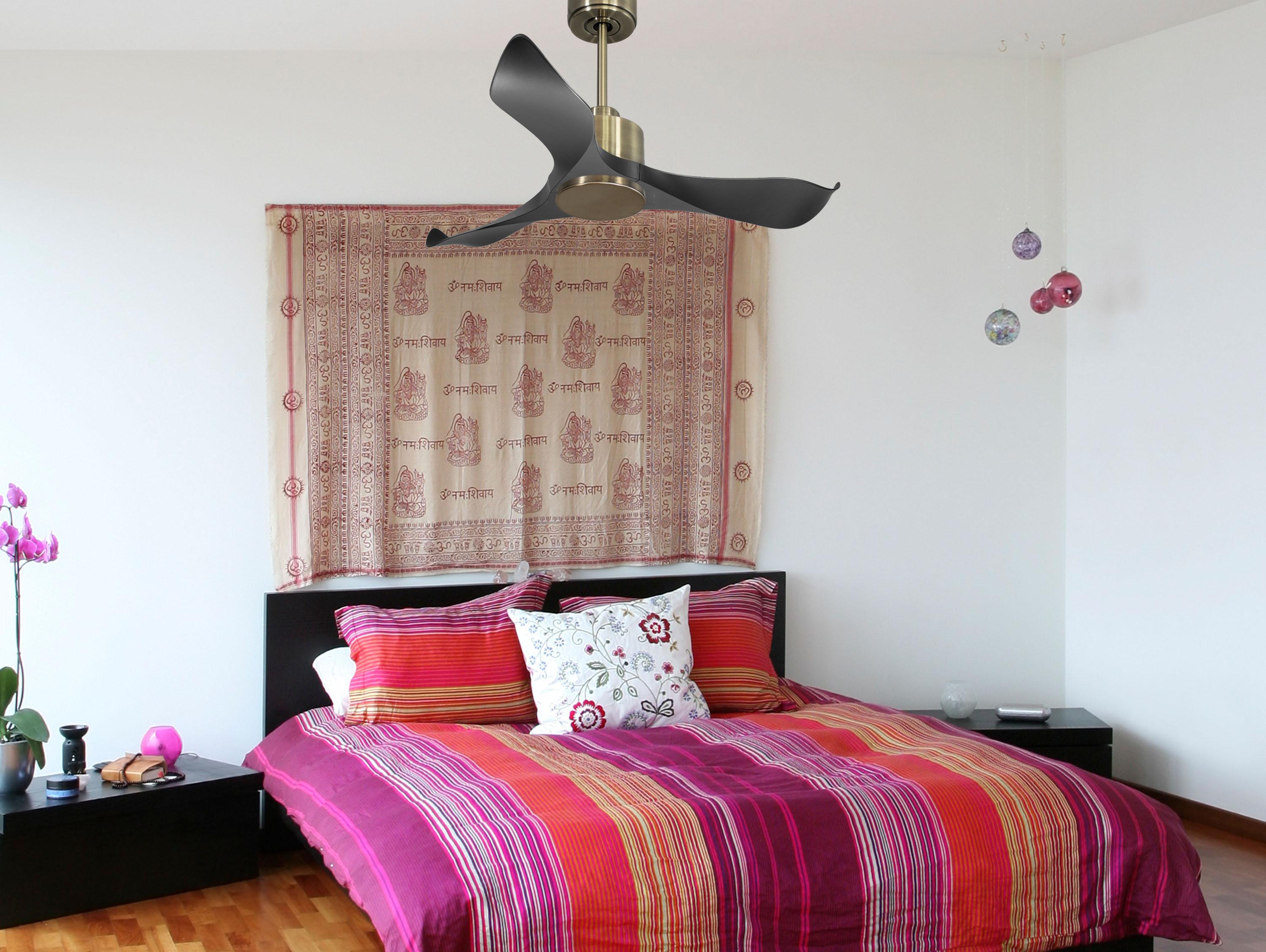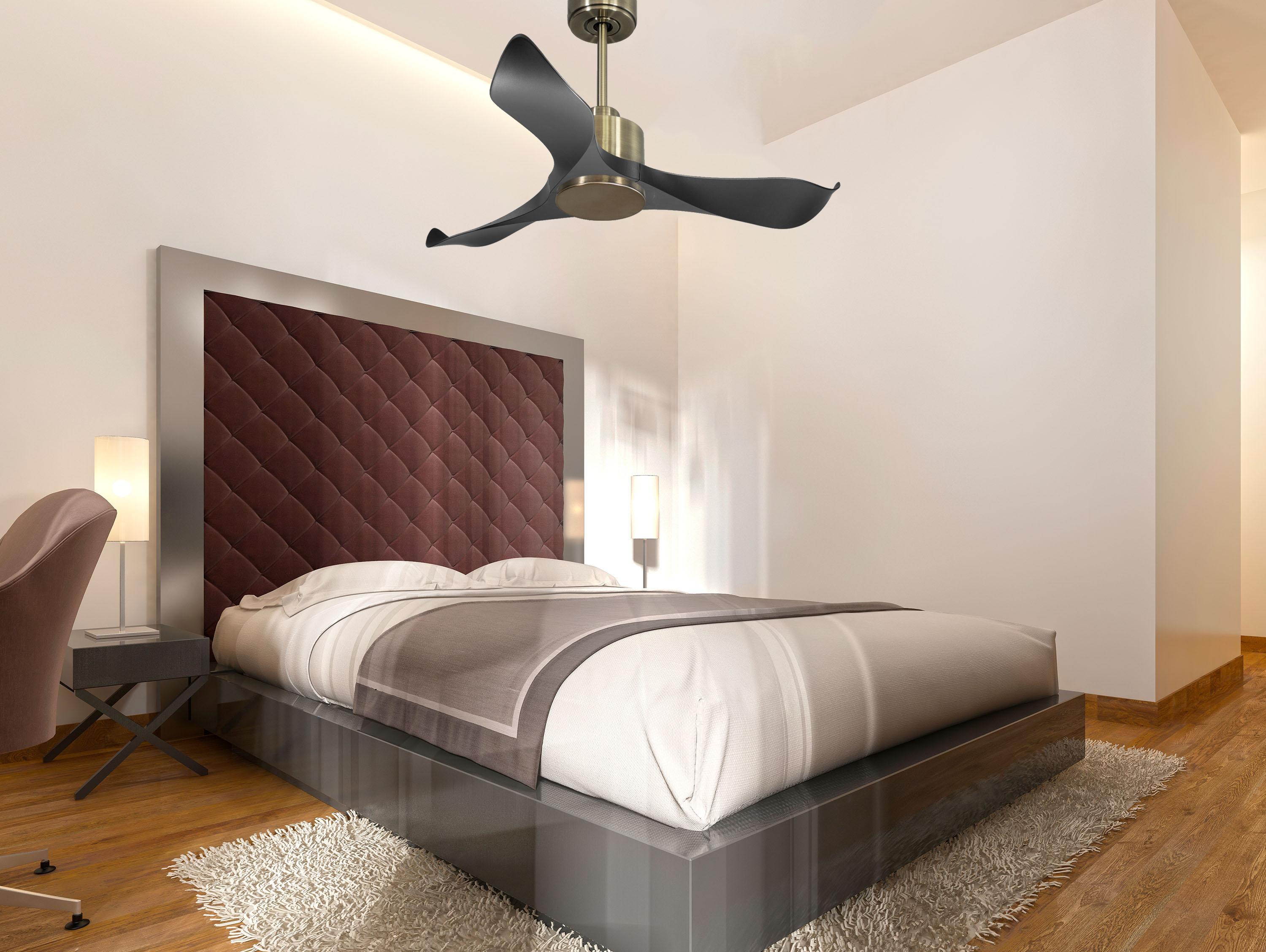 Las palas aerodinámicas de ABS otorgan al ventilador una gran ligereza. Han sido artesanalmente tratadas para estar equilibradas y no producir ningún tipo de vibración. Este modelo de 3 aspas en color negro tiene un diámetro de 106 cm y alcanza gran velocidad.
