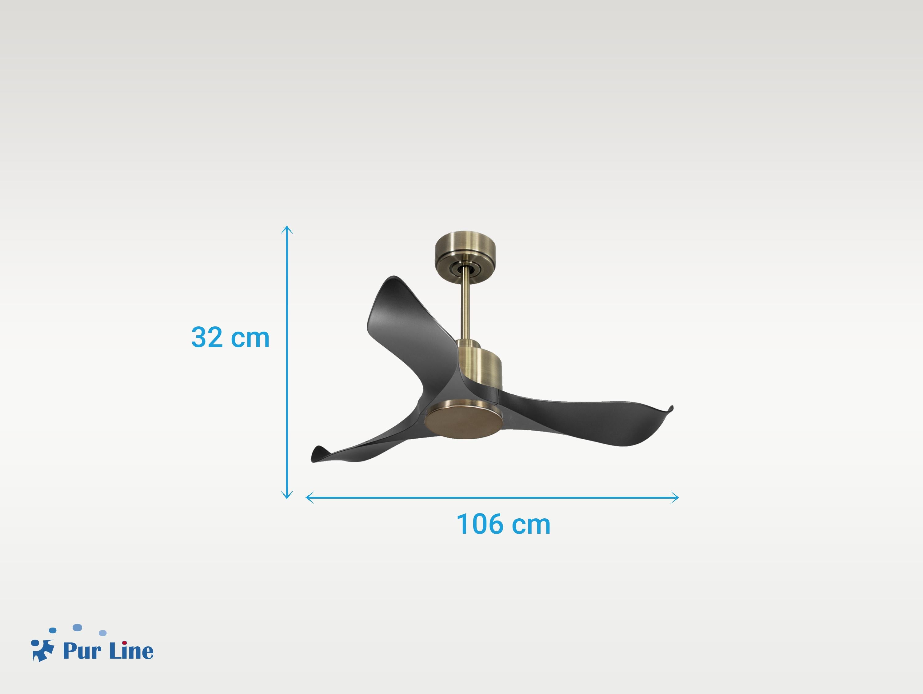El motor de corriente continua (DC) Klassfan by Purline, es un motor de alta calidad con unas prestaciones de alto nivel. Permite instalaciones en techos de hasta 15º de inclinación y se sirve con dos tijas para que se instale a la altura adecuada (13.5 cm y 25 cm). Permite 2 o 3 aspas (dependiendo del modelo de aspa), pues dispone de una función de auto equilibrado. Todos los motores permite incluir un kit de luz.Es un motor con función Verano/Invierno (Desestratificador de aire), de forma que en invierno podrás invertir el movimiento del motor, para que su giro desplace el aire caliente hacia abajo, actuando como complemento de tu sistema de calefacción y favoreciendo un consumo optimizado con un importante ahorro energético. Además incluye un termostato en su base superior, que te permite programar el ventilador para funcione según la temperatura ambiente.Una ventaja muy destacada, es su sistema FullFlow patentado, que permite calibrar el consumo y la potencia del motor, a las necesidades de las palas elegidas, logrando unos resultados espectaculares en rendimiento energético. Nuestro sistema Fullflow permite una verdadera versatibilidad.Ademas cuenta con multitud de ventajas adicionales como 6 velocidades programables (fullflow), temporizador (8h) y posibilidad de control remoto mediante mando a distancia, mando de pared y conexión WiFi con la aplicación Tuya Smart, para poder utilizar el ventilador desde cualquier dispositivo móvil. Cuenta también con sistema certificado Hypersilence, una tecnología súper silenciosa a velocidad 3 y que permite utilizar el ventilador por las noches o en momentos de descansos, ofreciendo un rendimiento muy silencioso y con un consumo muy reducido, pudiendo llegar de 3 a 5 W, con aspas de 106 cm.También dispone de una función de memoria que guarda la configuración utilizada, tanto de velocidad como de luz, si así está equipado, de forma que cuando se apaga el ventilador se guarda y cuando se vuelve a encender arranca con la misma configuración. Las palas aerodinámicas de ABS otorgan al ventilador una gran ligereza. Han sido artesanalmente tratadas para estar equilibradas y no producir ningún tipo de vibración. Este modelo de 3 aspas en color negro tiene un diámetro de 106 cm y alcanza gran velocidad.