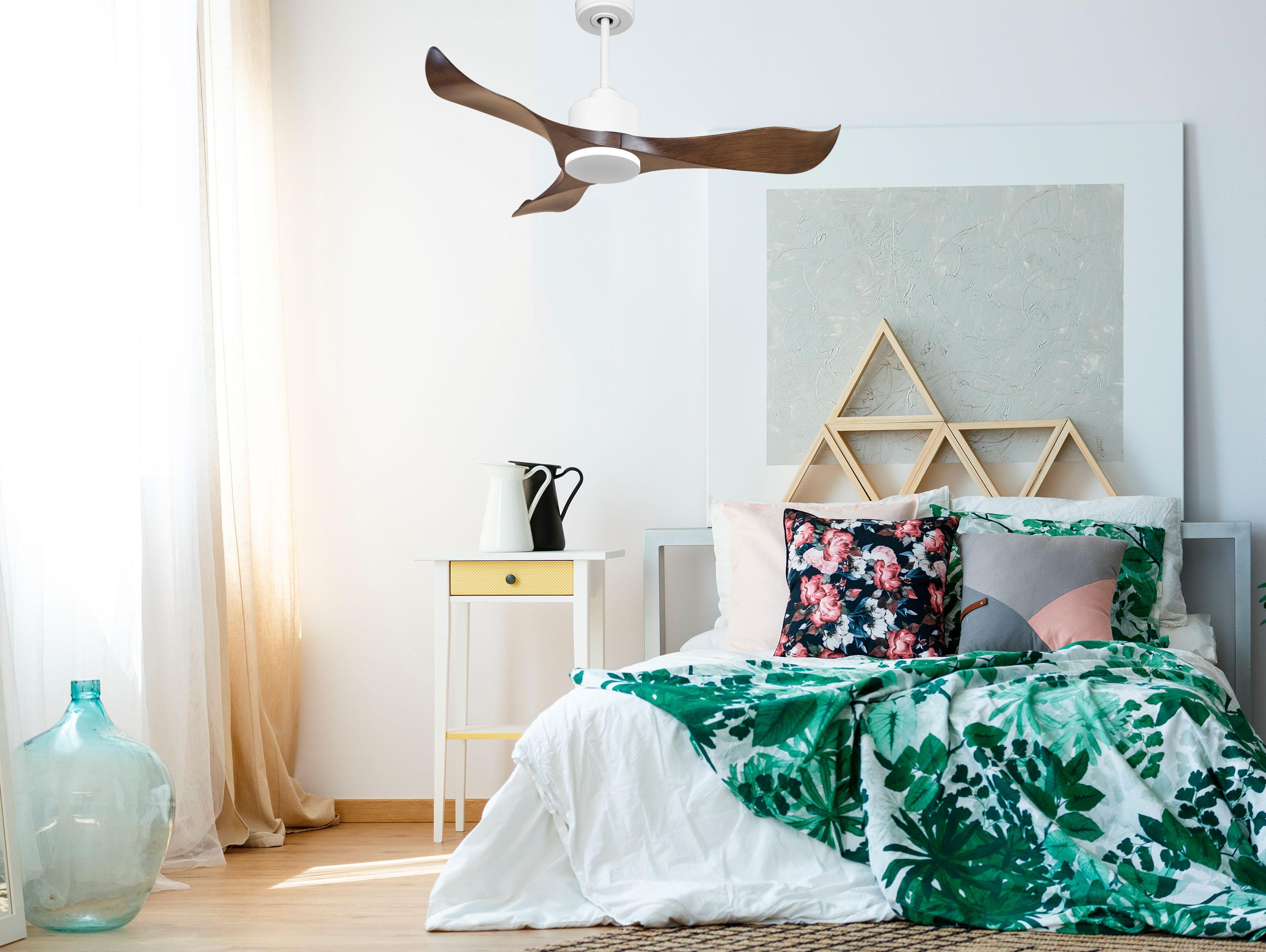 Ventilador de techo Reversible Termostato Wifi Motor DC Techos Inclinados Mando a Distancia Adaptador 2/3 Aspas Hypersilence Memoria