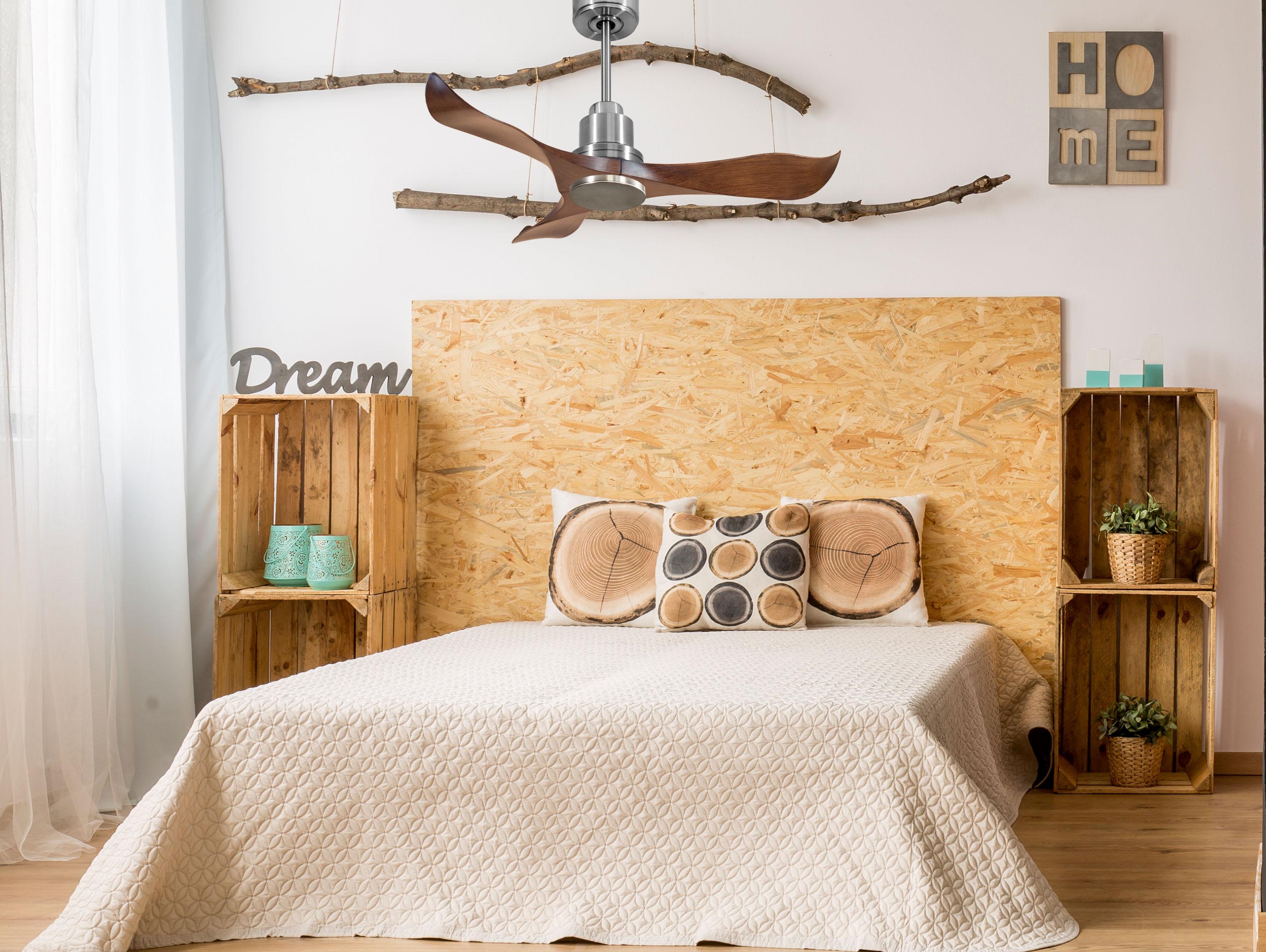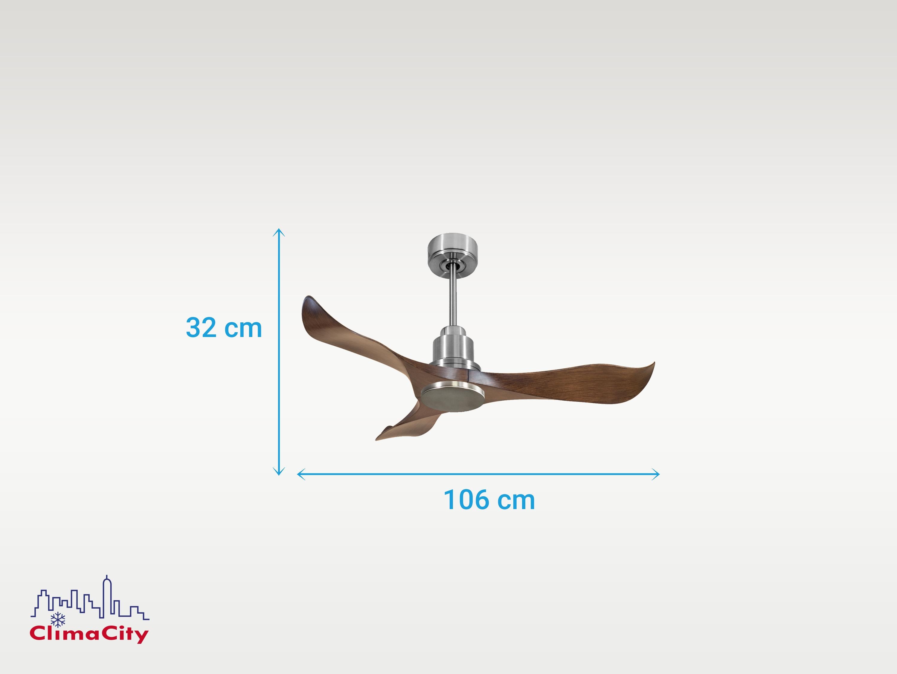 Las palas aerodinámicas de ABS otorgan al ventilador una gran ligereza. Han sido artesanalmente tratadas para estar equilibradas y no producir ningún tipo de vibración. Este modelo de 3 aspas en color marrón tiene un diámetro de 106 cm y alcanza gran velocidad.