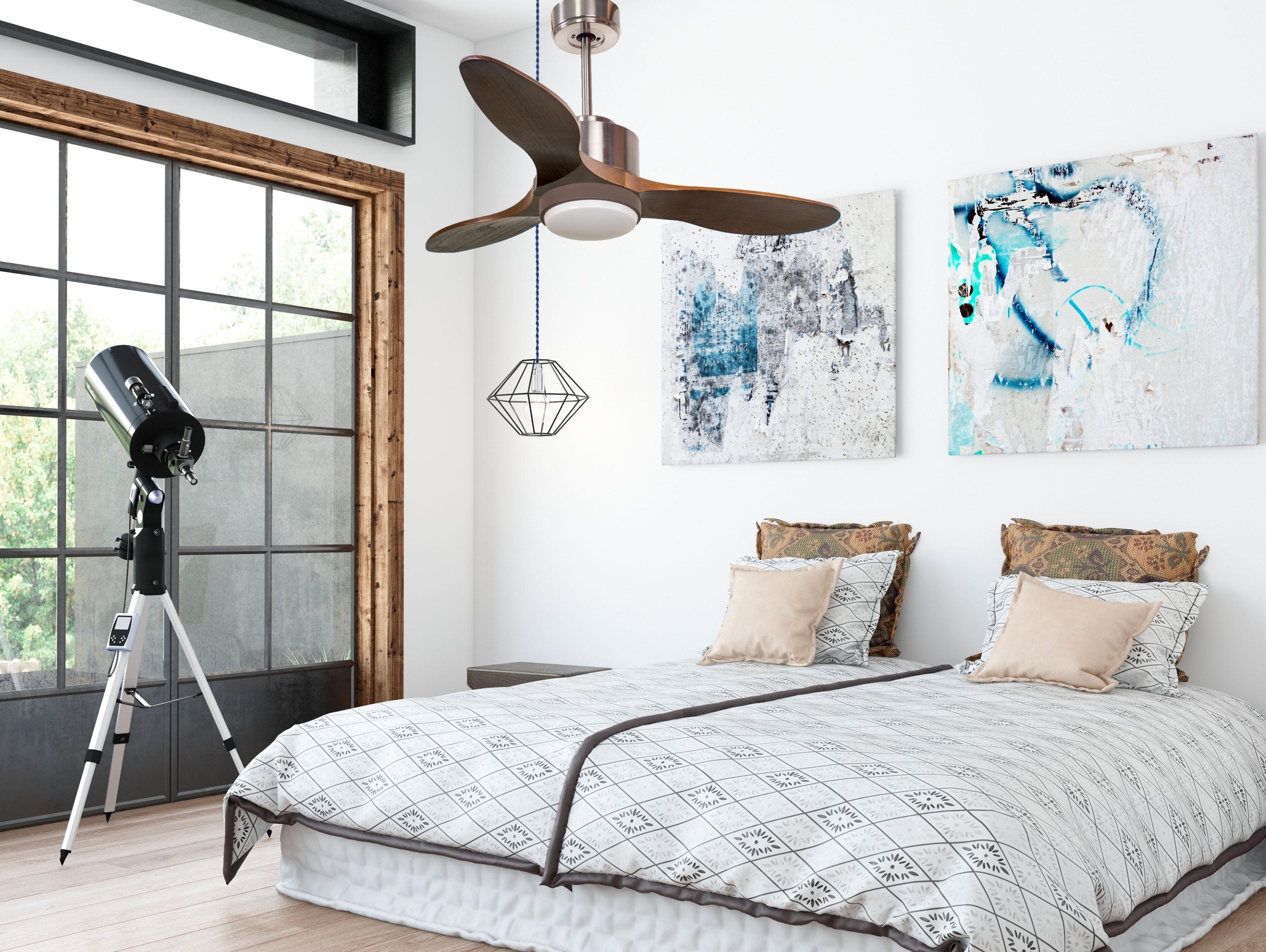 Las palas aerodinámicas de madera balsa maciza otorgan al ventilador una gran ligereza. Han sido artesanalmente tratadas para estar equilibradas y no producir ningún tipo de vibración. Este modelo de 3 aspas acabadas en madera oscura tiene un diámetro de 106 cm