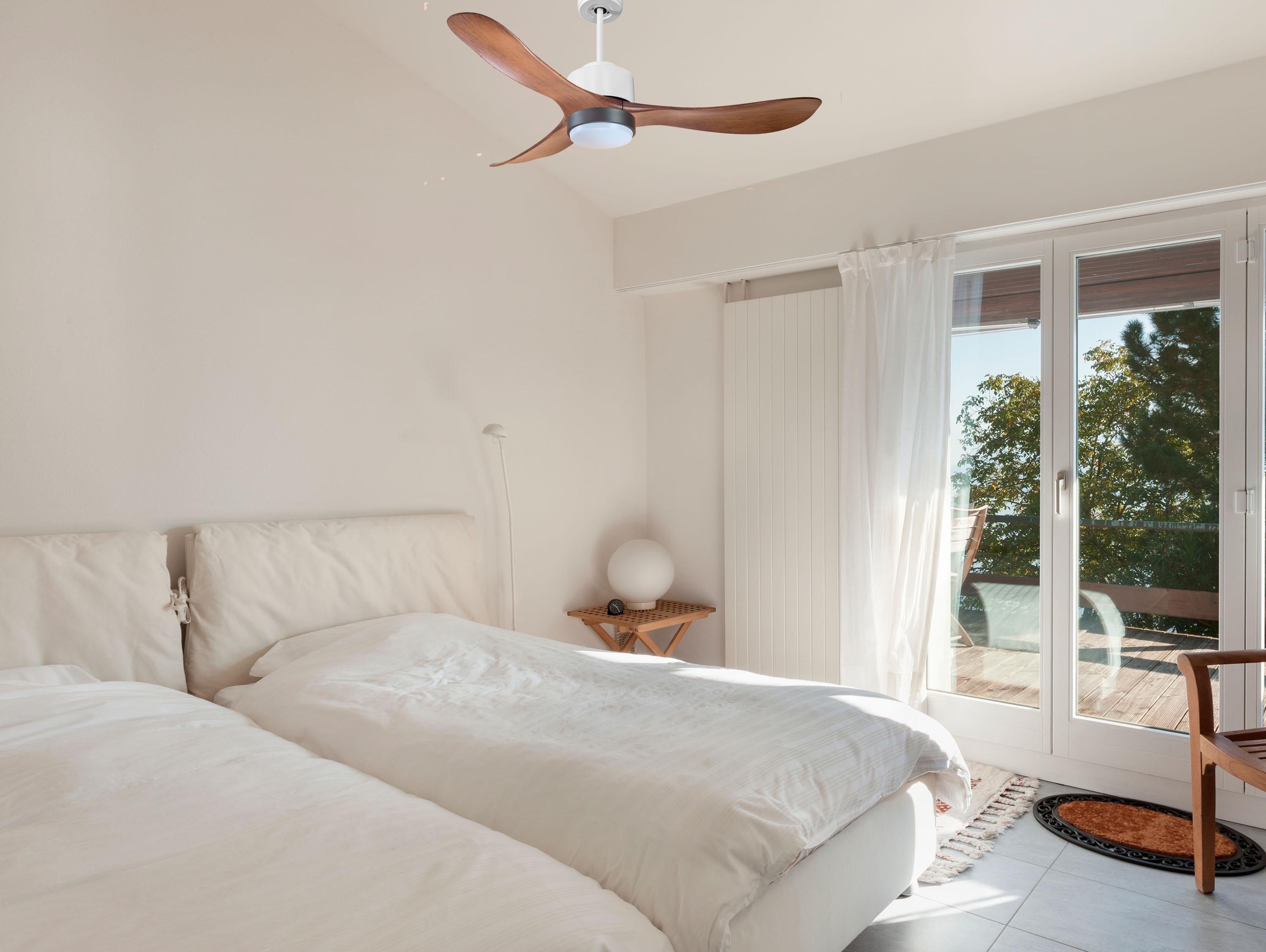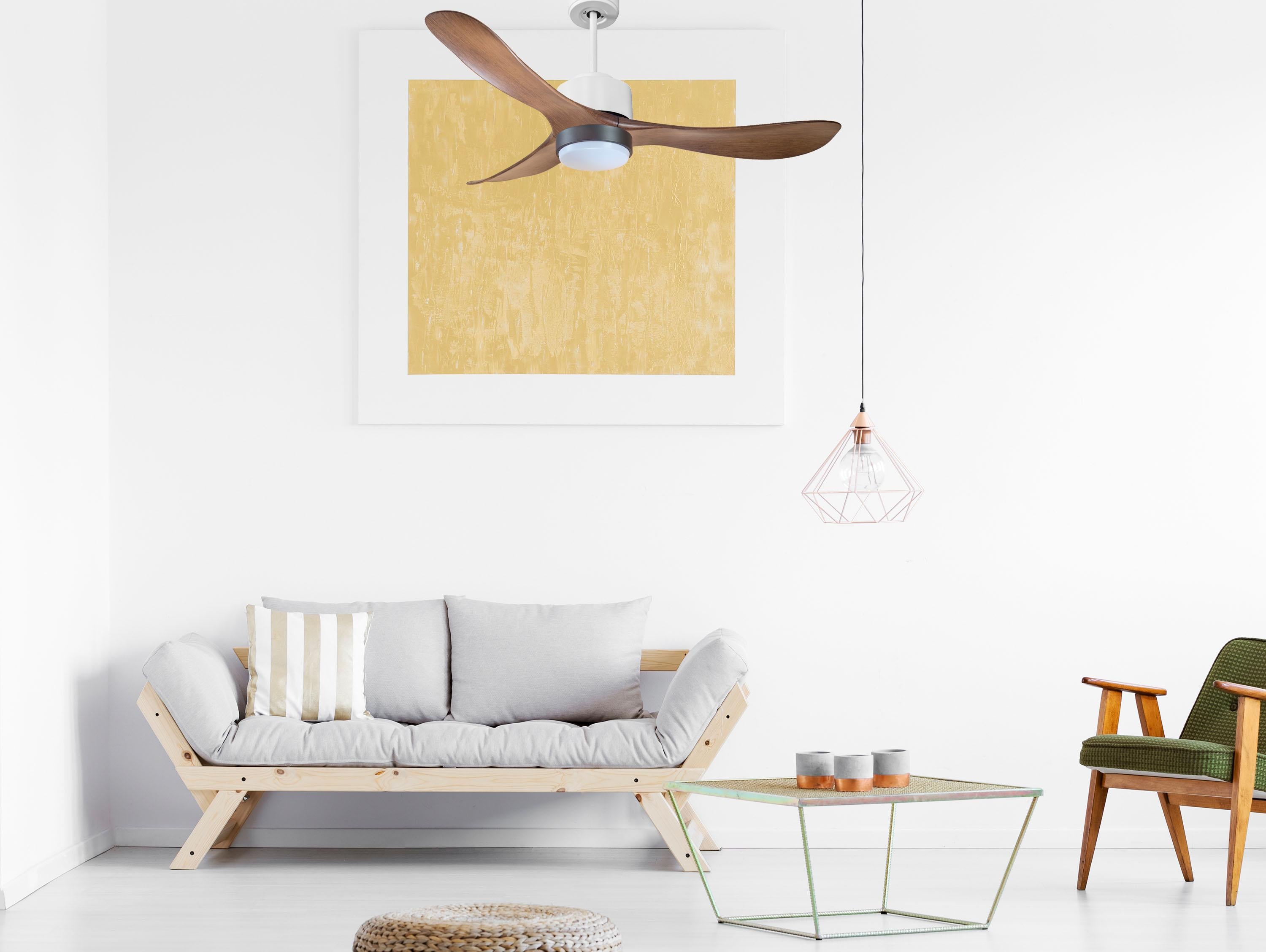 Ventilador de techo Modo Invierno/Verano Termostato Dimable Wifi Motor DC Techos Inclinados Mando a Distancia Luz tres tonos Hypersilence Memoria Vendible Shopify (AUTOMATICO)