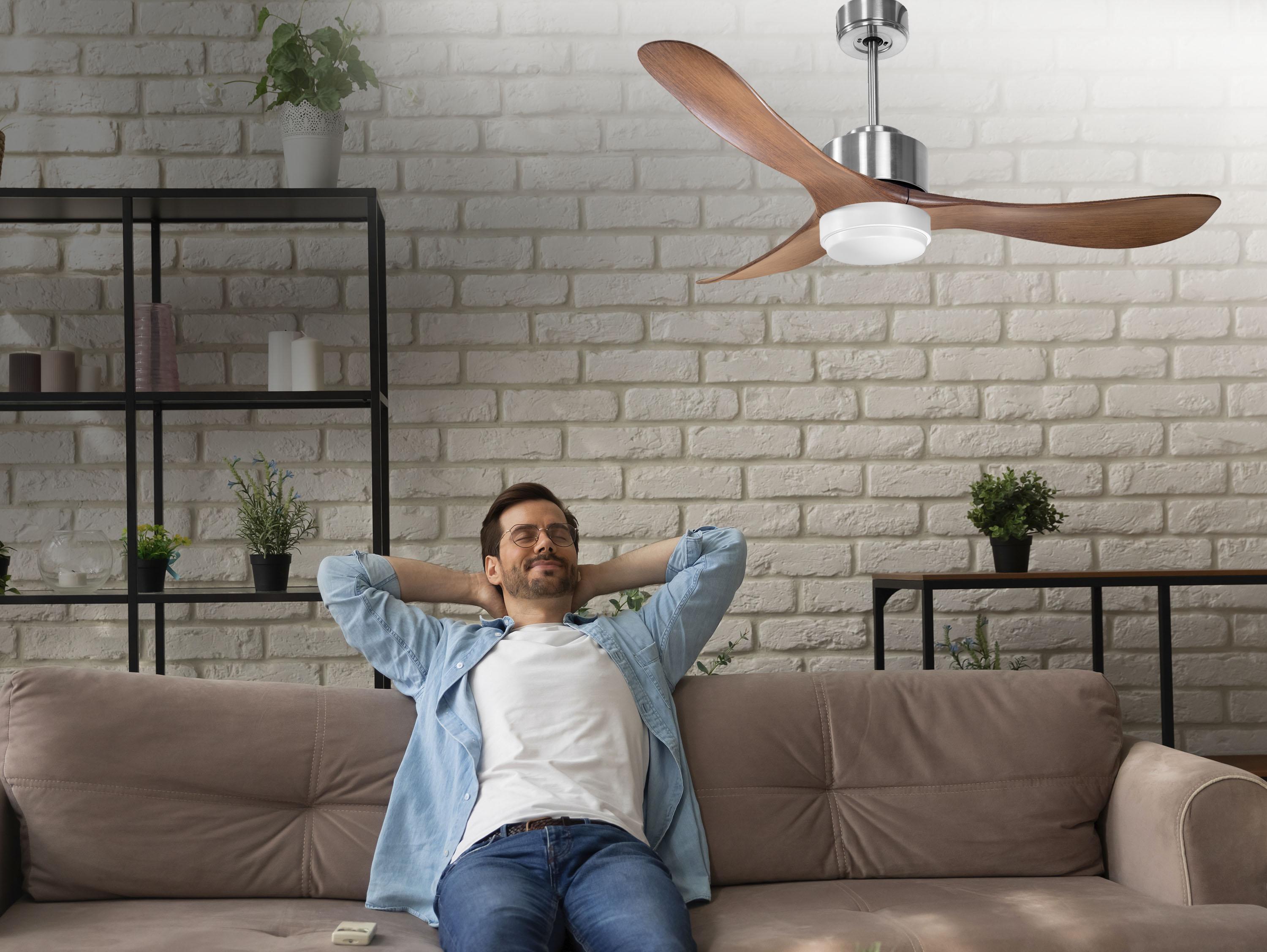 Ventilador de techo Modo Invierno/Verano Termostato Dimable Wifi Motor DC Techos Inclinados Mando a Distancia Luz tres tonos Hypersilence Memoria Vendible Shopify (AUTOMATICO)