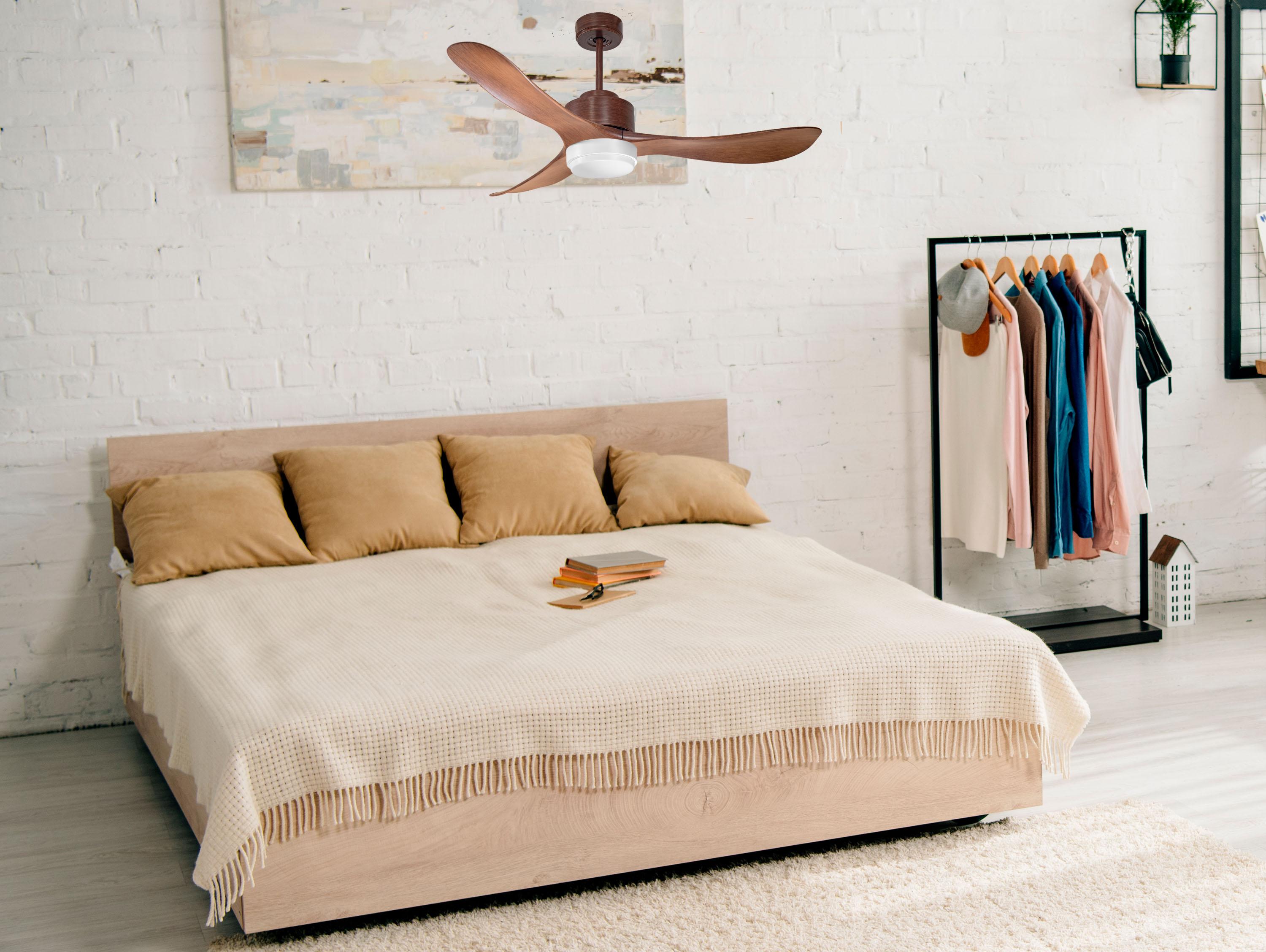 Las palas aerodinámicas de ABS otorgan al ventilador una gran ligereza. Han sido artesanalmente tratadas para estar equilibradas y no producir ningún tipo de vibración. Este modelo de 3 aspas en marrón tiene un diámetro de 132 cm y alcanza gran velocidad.
