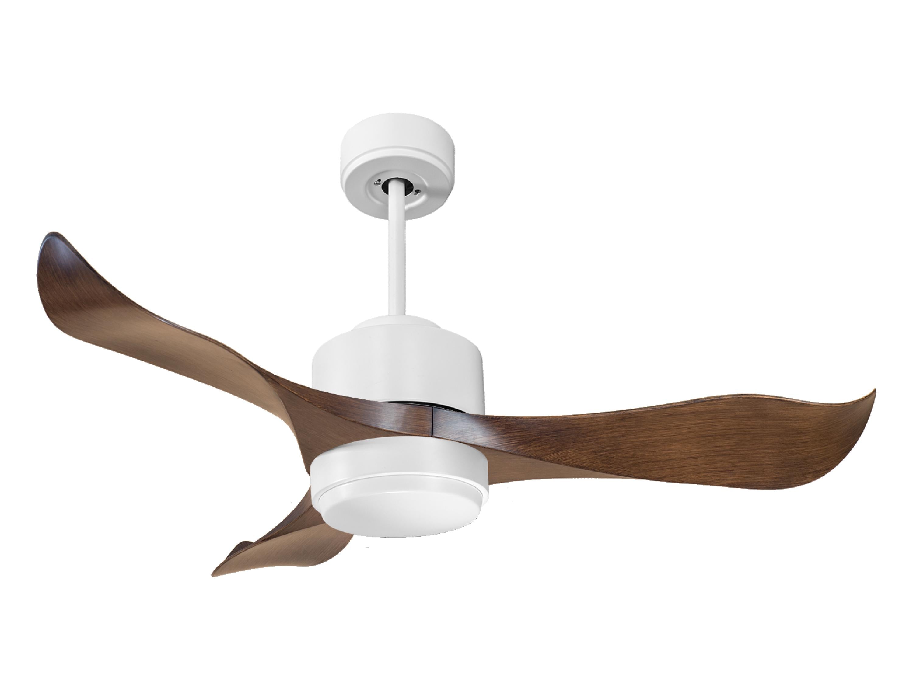 Las palas aerodinámicas de ABS otorgan al ventilador una gran ligereza. Han sido artesanalmente tratadas para estar equilibradas y no producir ningún tipo de vibración. Este modelo de 3 aspas en color marrón tiene un diámetro de 106 cm y alcanza gran velocidad.