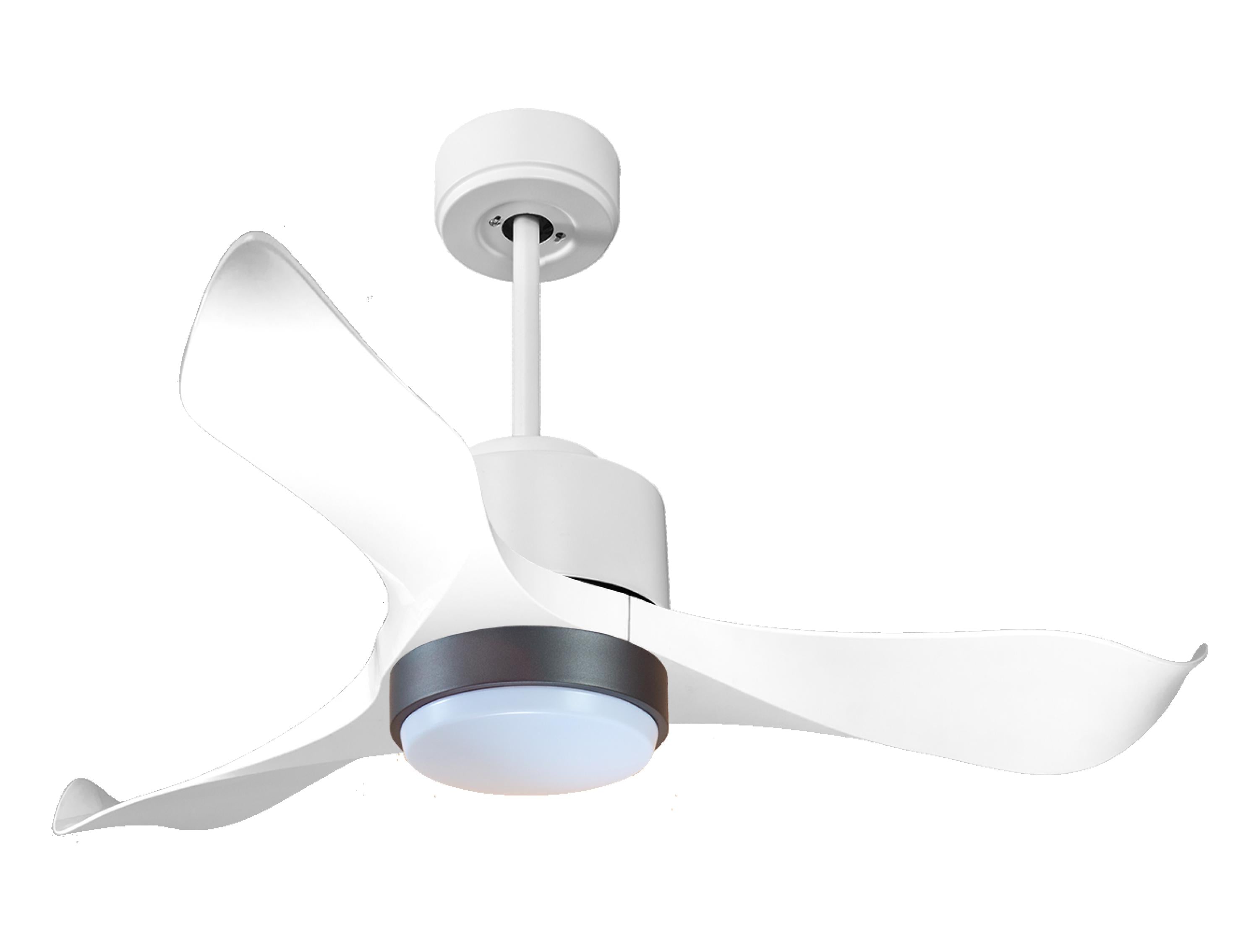 Las palas aerodinámicas de ABS otorgan al ventilador una gran ligereza. Han sido artesanalmente tratadas para estar equilibradas y no producir ningún tipo de vibración. Este modelo de 3 aspas en color blanco tiene un diámetro de 106 cm y alcanza gran velocidad.