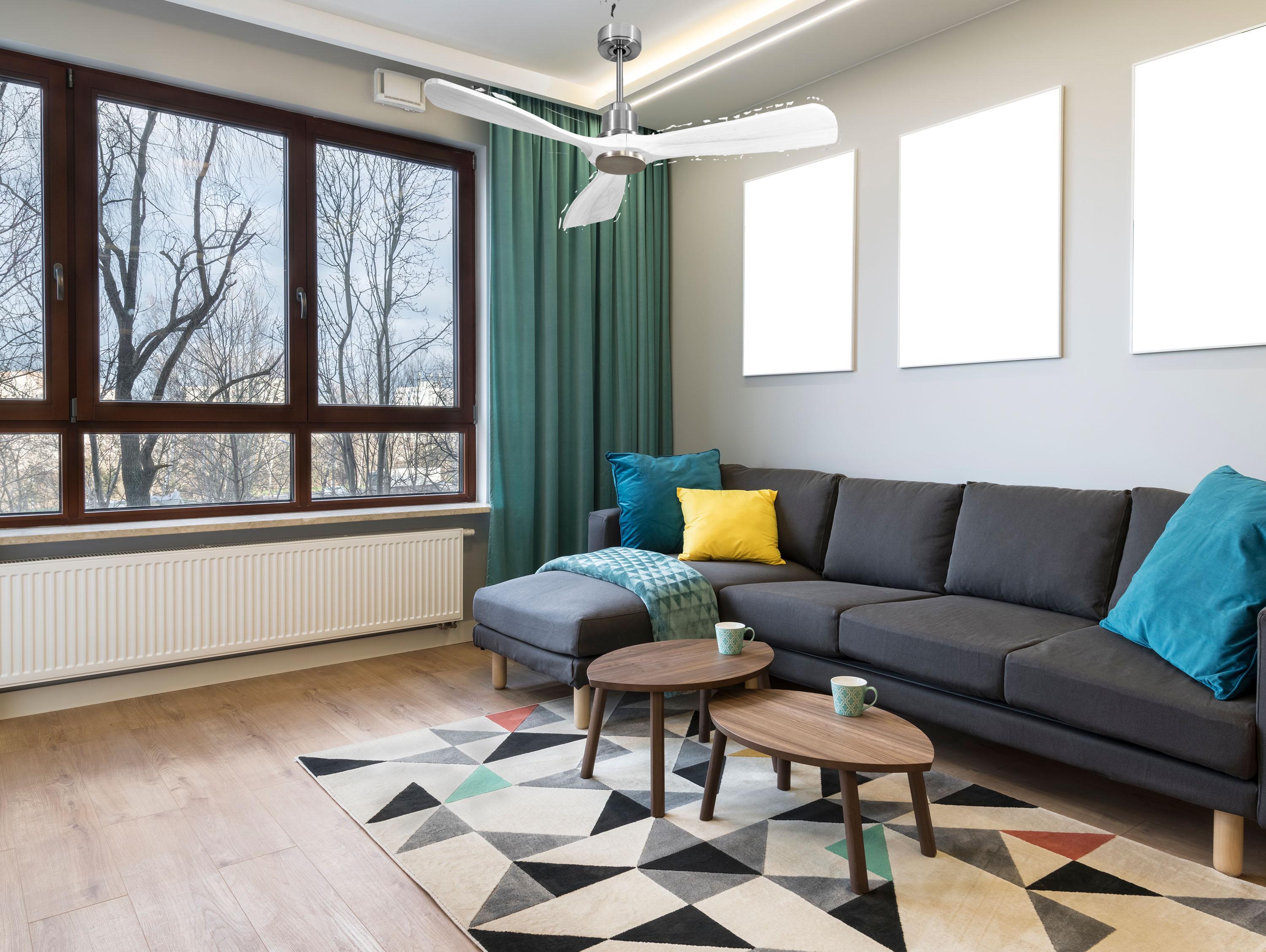 Ventilador de techo Modo Invierno/Verano Termostato Wifi Motor DC Techos Inclinados Mando a Distancia Hypersilence Memoria FullWood