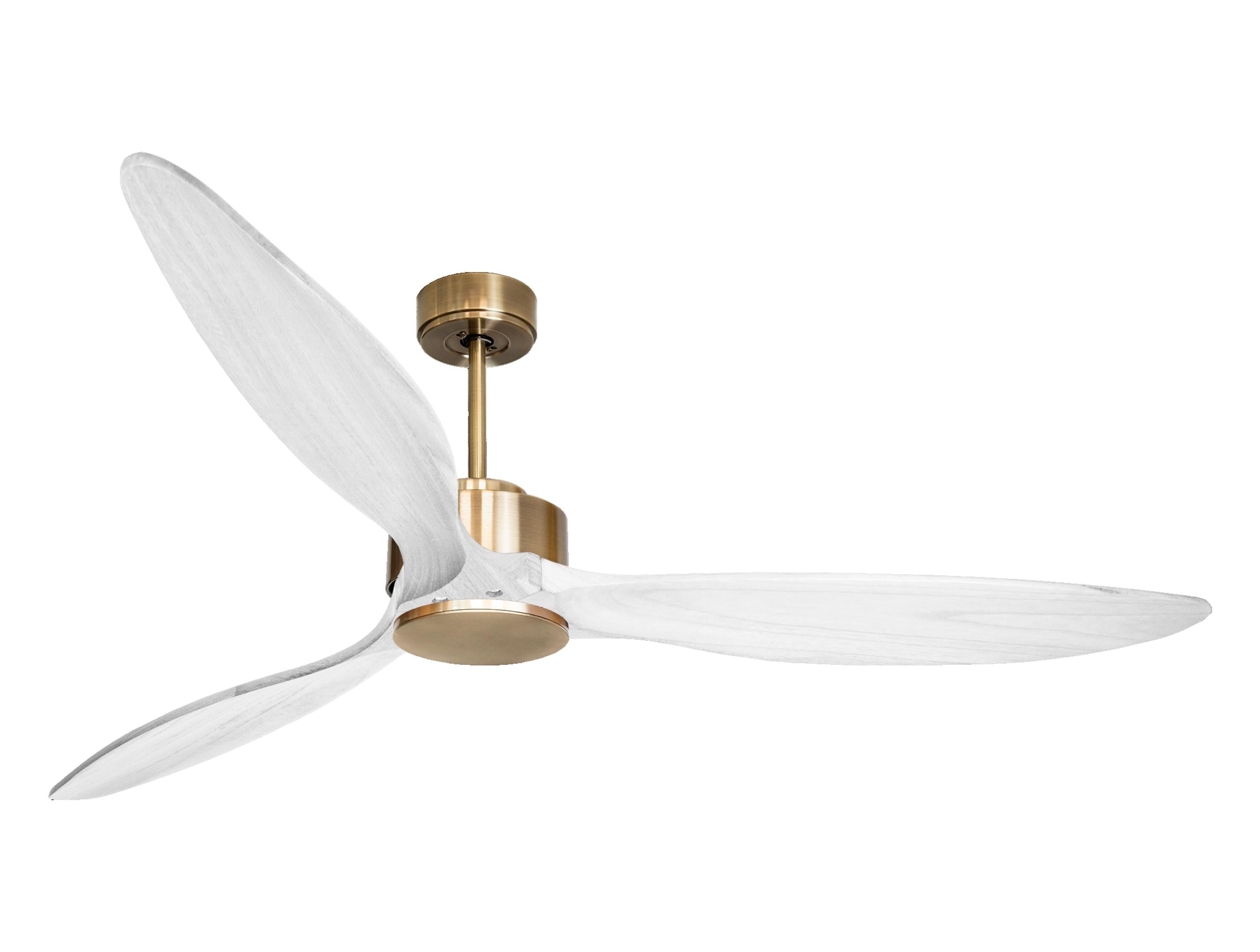 Las palas aerodinámicas de madera balsa maciza otorgan al ventilador una gran ligereza. Han sido artesanalmente tratadas para estar equilibradas y no producir ningún tipo de vibración. Este modelo de 3 aspas acabadas en madera blanca tiene un diámetro de 166 cm.