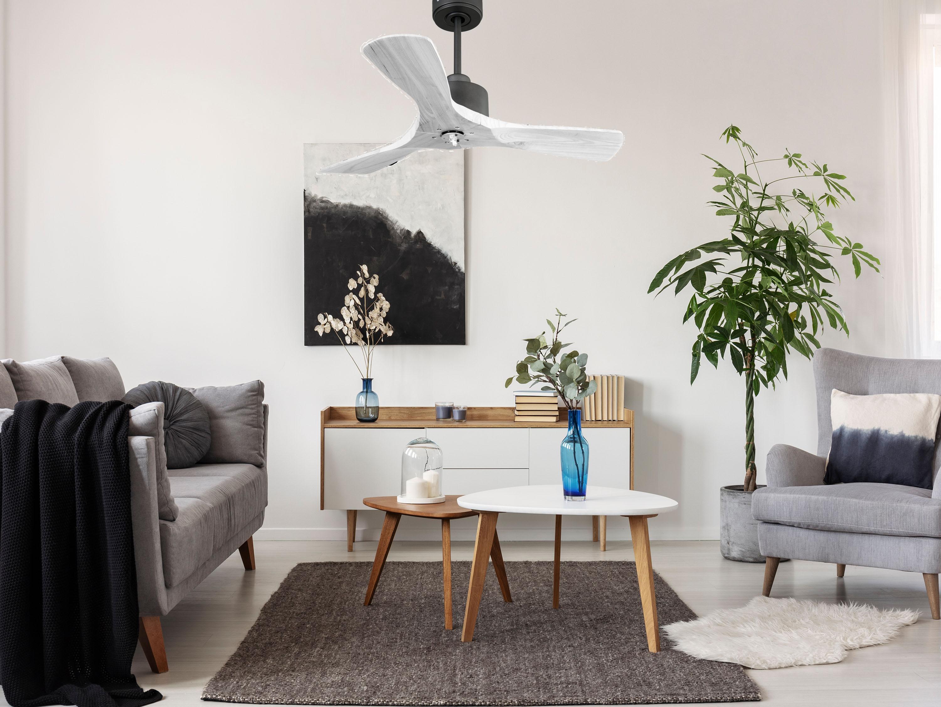 Ventilador de techo Modo Invierno/Verano Termostato Dimable Wifi Motor DC Techos Inclinados Mando a Distancia Luz tres tonos Hypersilence Memoria