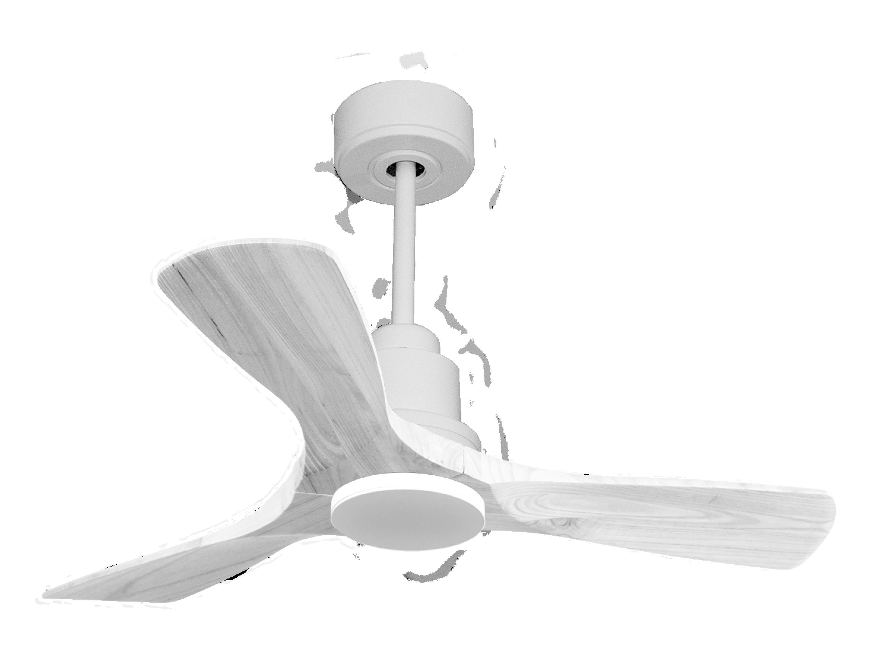 También dispone de una función de memoria que guarda la configuración utilizada, tanto de velocidad como de luz, si así está equipado, de forma que cuando se apaga el ventilador se guarda y cuando se vuelve a encender arranca con la misma configuración. Las palas aerodinámicas de madera balsa maciza otorgan al ventilador una gran ligereza. Han sido artesanalmente tratadas para estar equilibradas y no producir ningún tipo de vibración. Este modelo de 3 aspas acabadas en madera blanca tiene un diámetro de 106 cm
