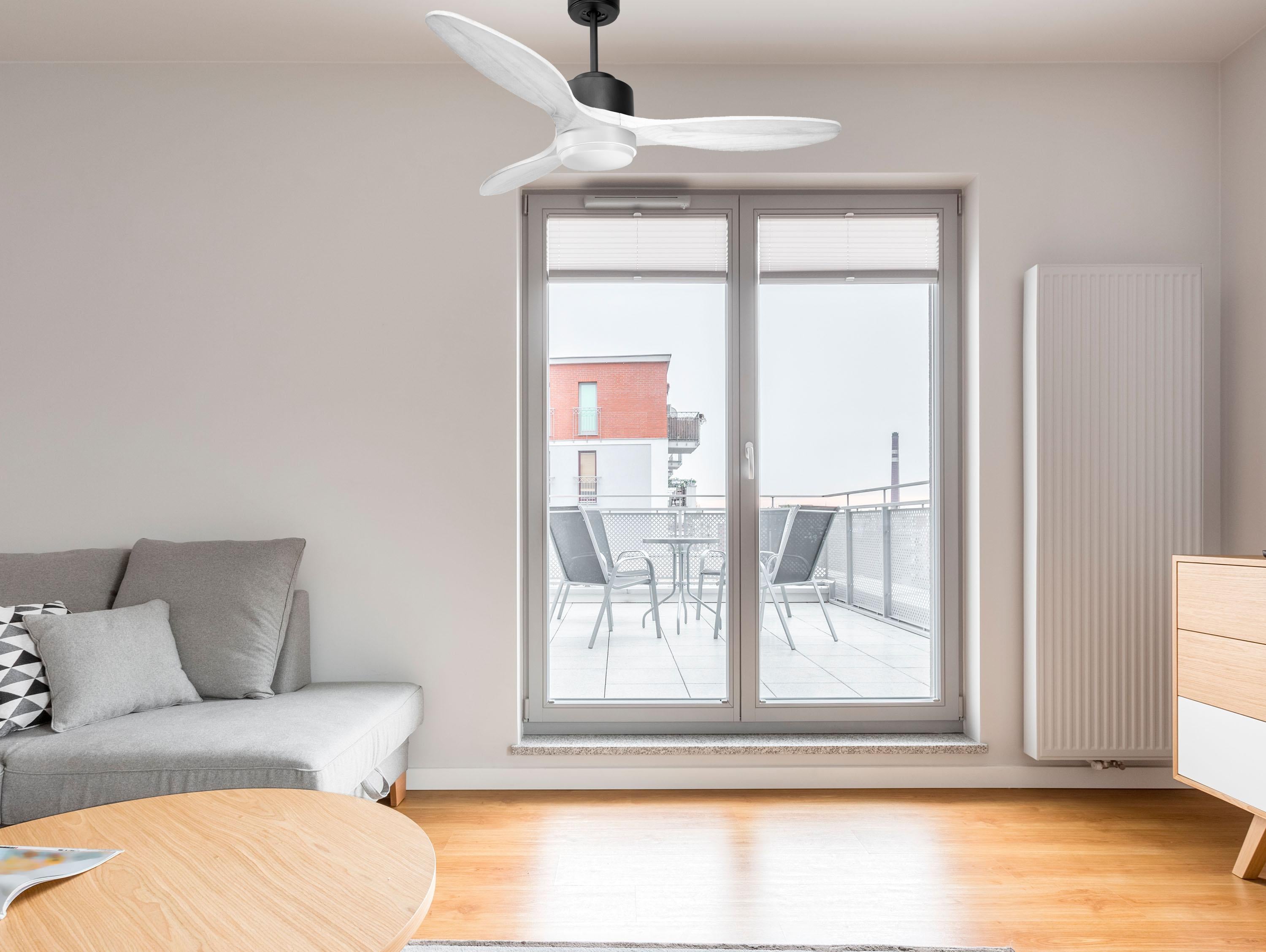 Ventilador de techo Modo Invierno/Verano Termostato Dimable Wifi Motor DC Techos Inclinados Mando a Distancia Luz tres tonos Hypersilence Memoria