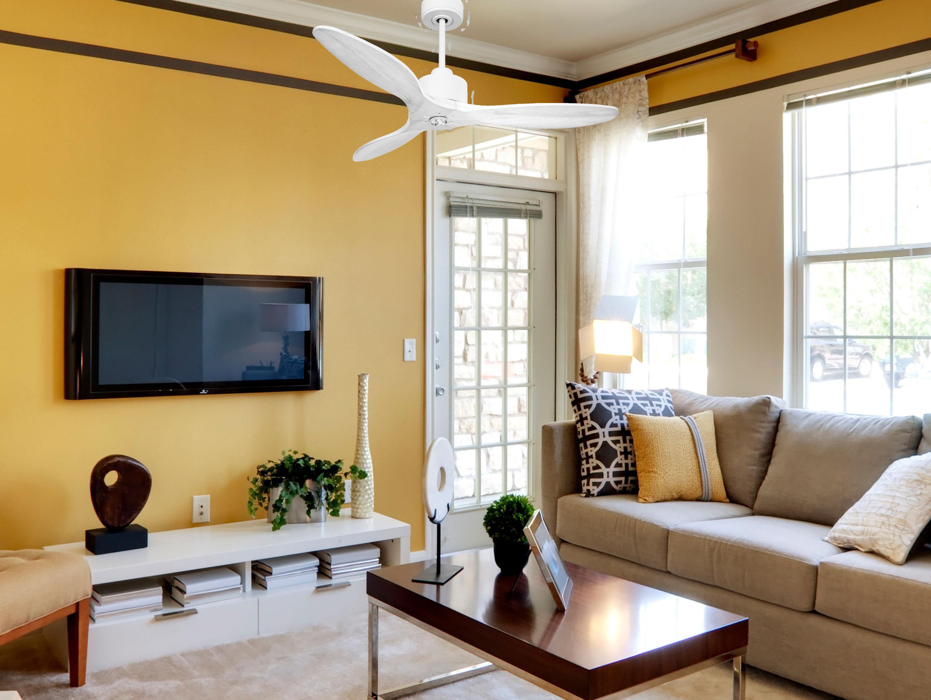Ventilador de techo Modo Invierno/Verano Termostato Dimable Wifi Motor DC Techos Inclinados Mando a Distancia Luz tres tonos Hypersilence Memoria