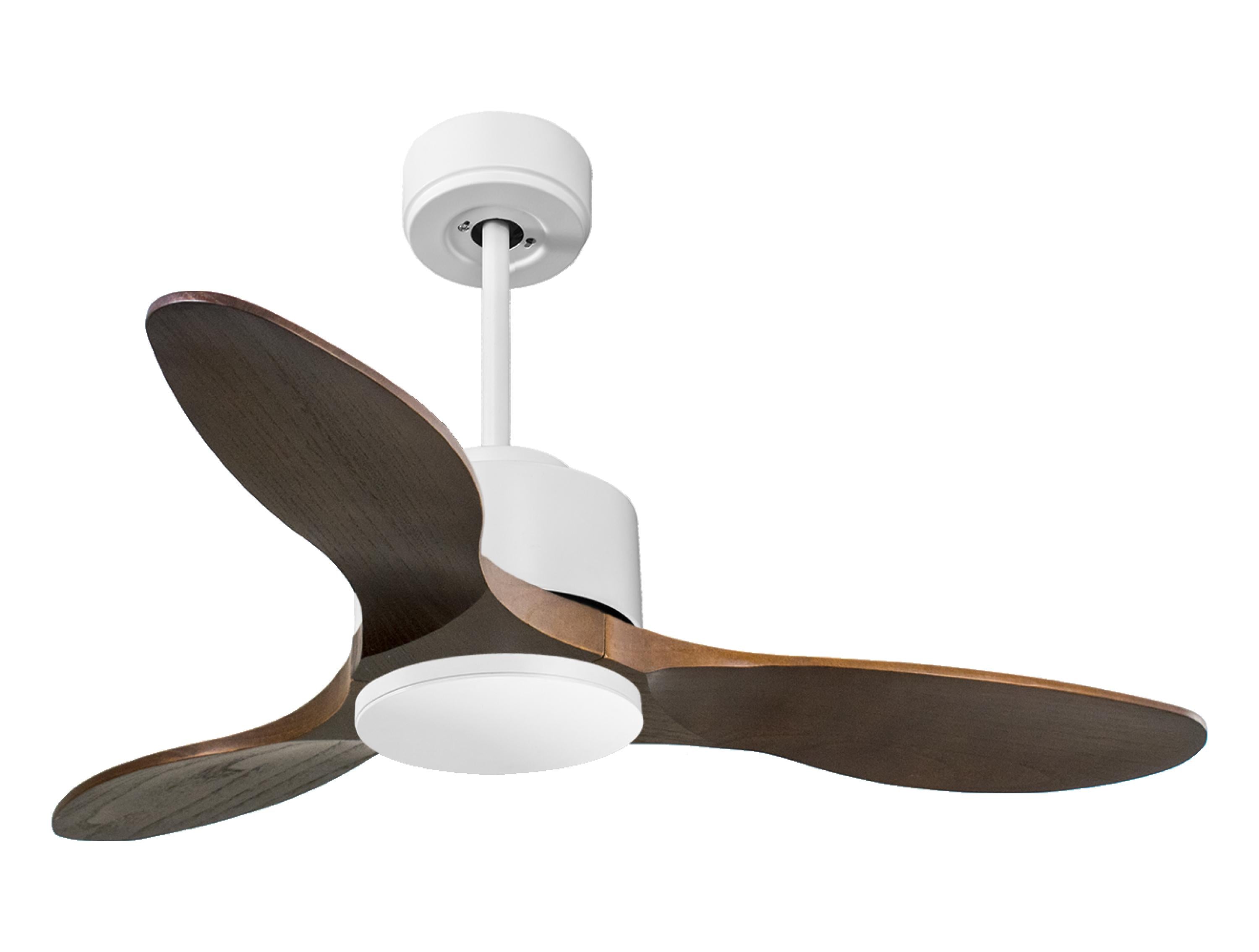 Las palas aerodinámicas de madera balsa maciza otorgan al ventilador una gran ligereza. Han sido artesanalmente tratadas para estar equilibradas y no producir ningún tipo de vibración. Este modelo de 3 aspas acabadas en madera oscura tiene un diámetro de 106 cm