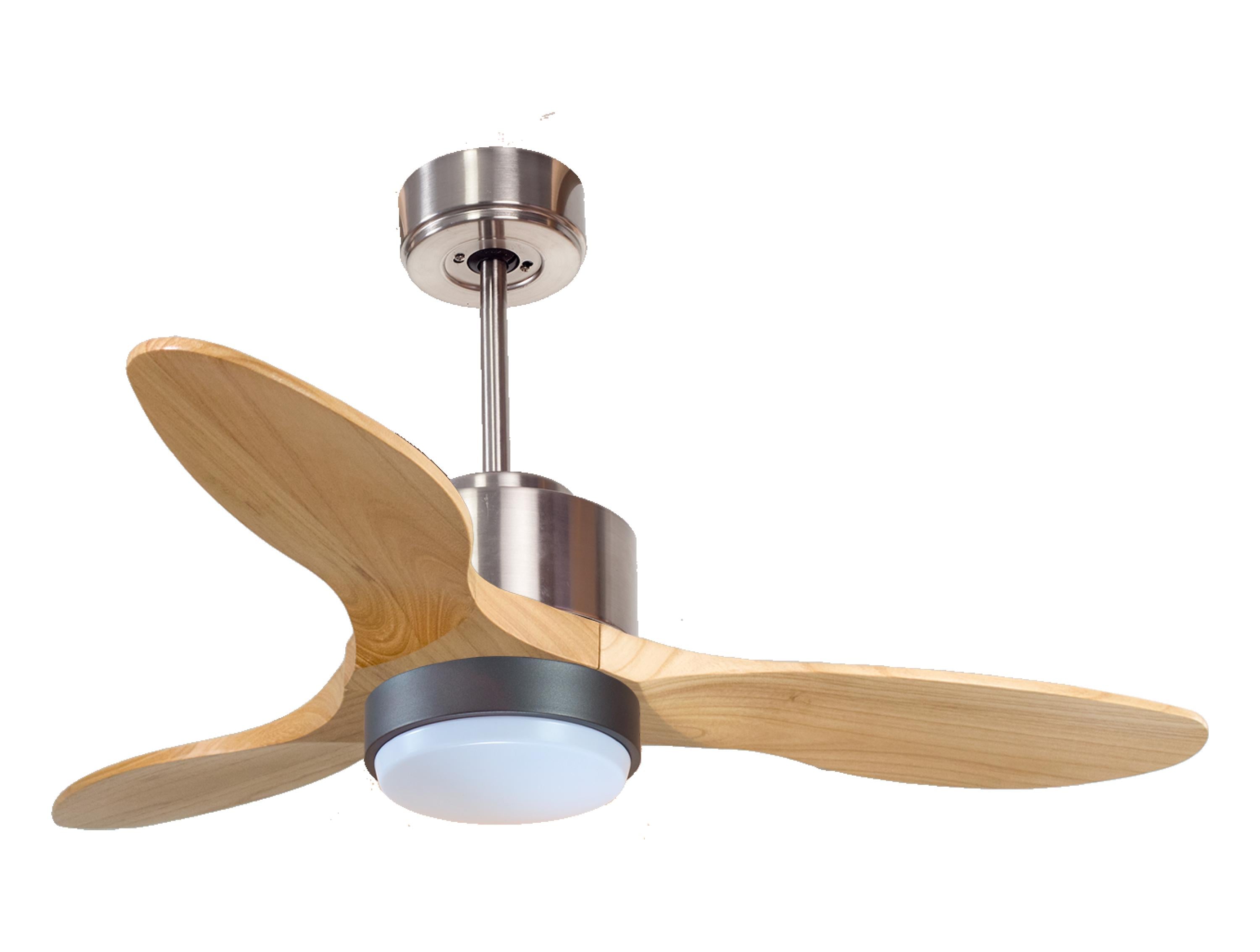 Las palas aerodinámicas de madera balsa maciza otorgan al ventilador una gran ligereza. Han sido artesanalmente tratadas para estar equilibradas y no producir ningún tipo de vibración. Este modelo de 3 aspas acabadas en madera clara tiene un diámetro de 106 cm y