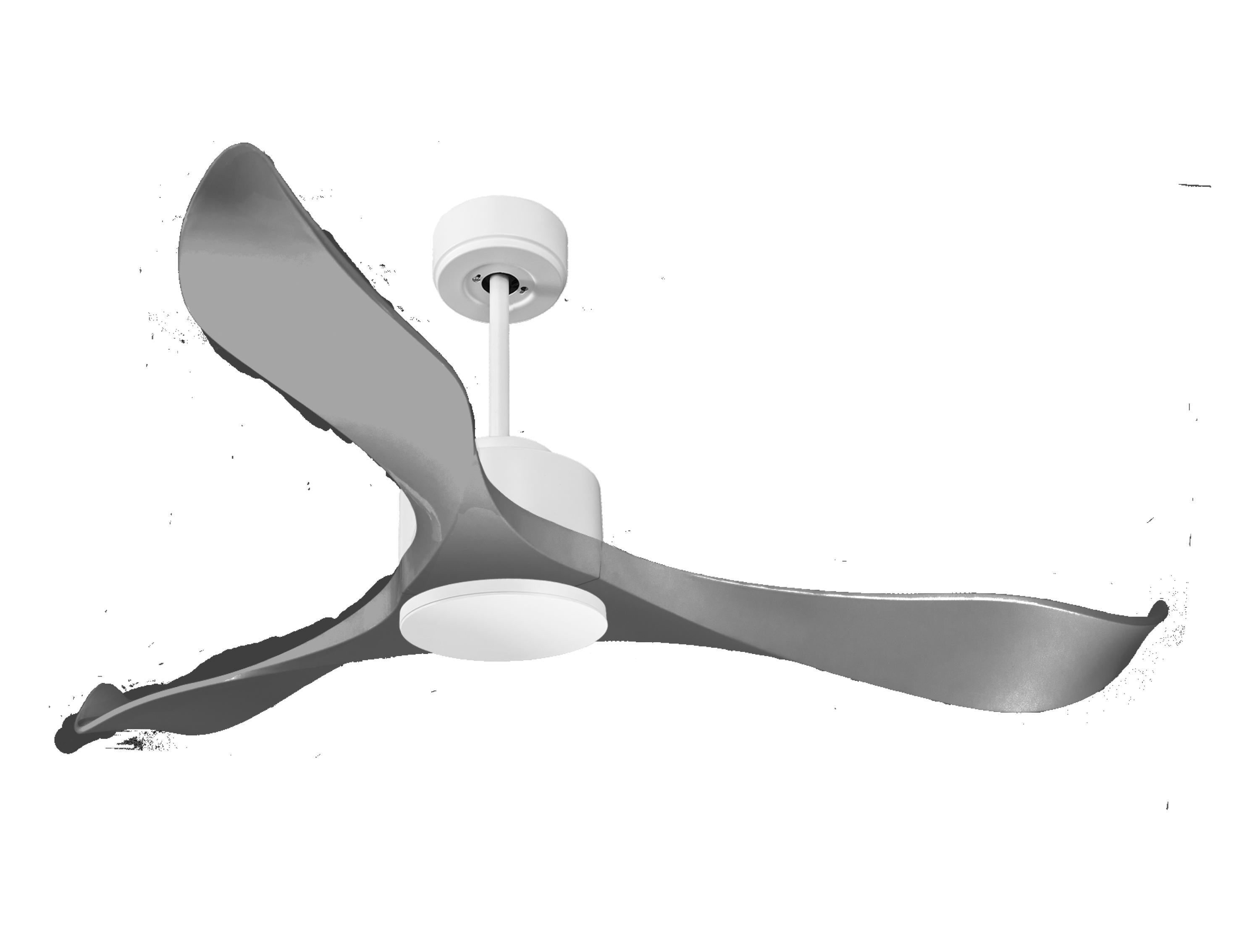 Las palas aerodinámicas de ABS otorgan al ventilador una gran ligereza. Han sido artesanalmente tratadas para estar equilibradas y no producir ningún tipo de vibración. Este modelo de 3 aspas en color gris tiene un diámetro de 132 cm y alcanza gran velocidad.