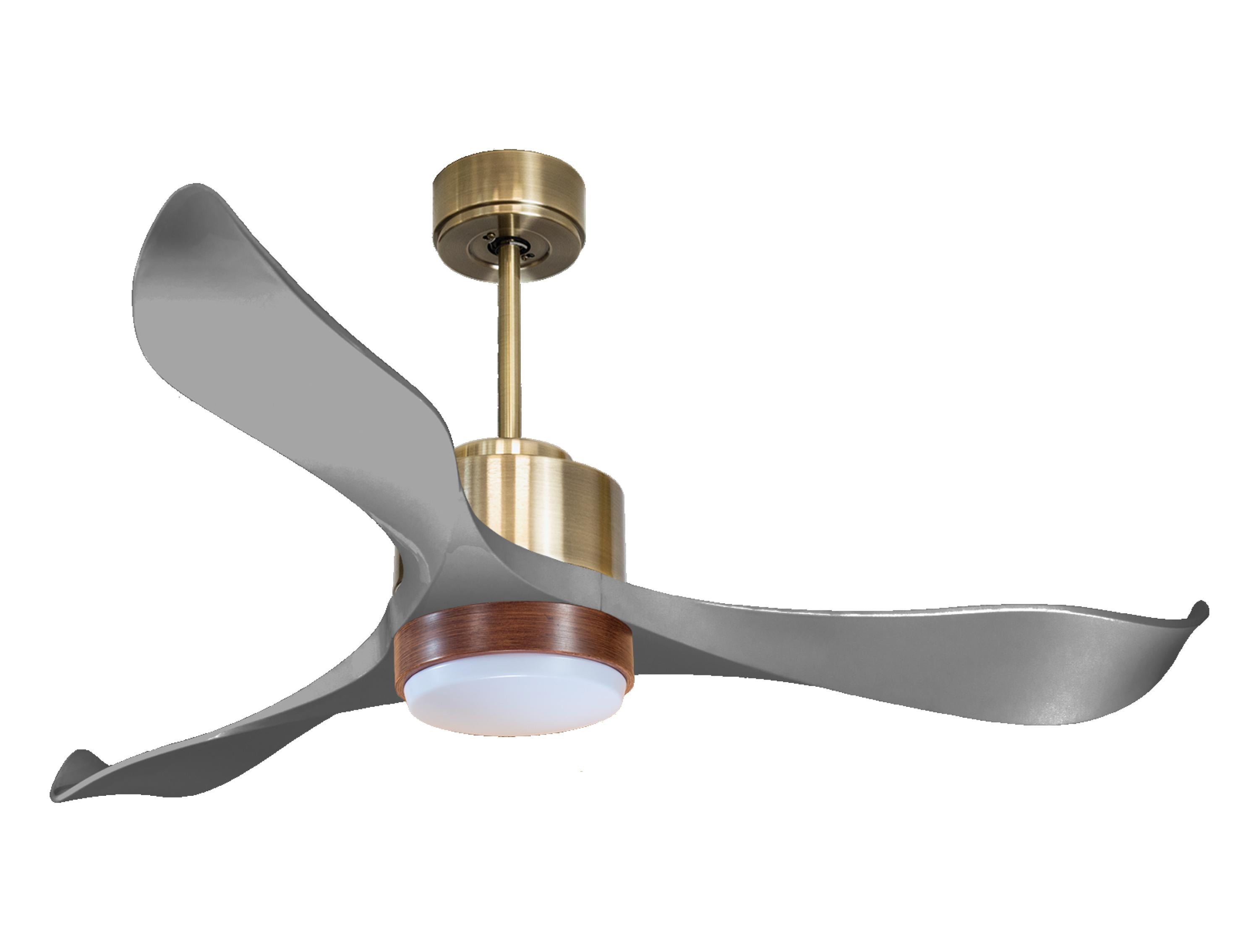 Las palas aerodinámicas de ABS otorgan al ventilador una gran ligereza. Han sido artesanalmente tratadas para estar equilibradas y no producir ningún tipo de vibración. Este modelo de 3 aspas en color gris tiene un diámetro de 132 cm y alcanza gran velocidad.