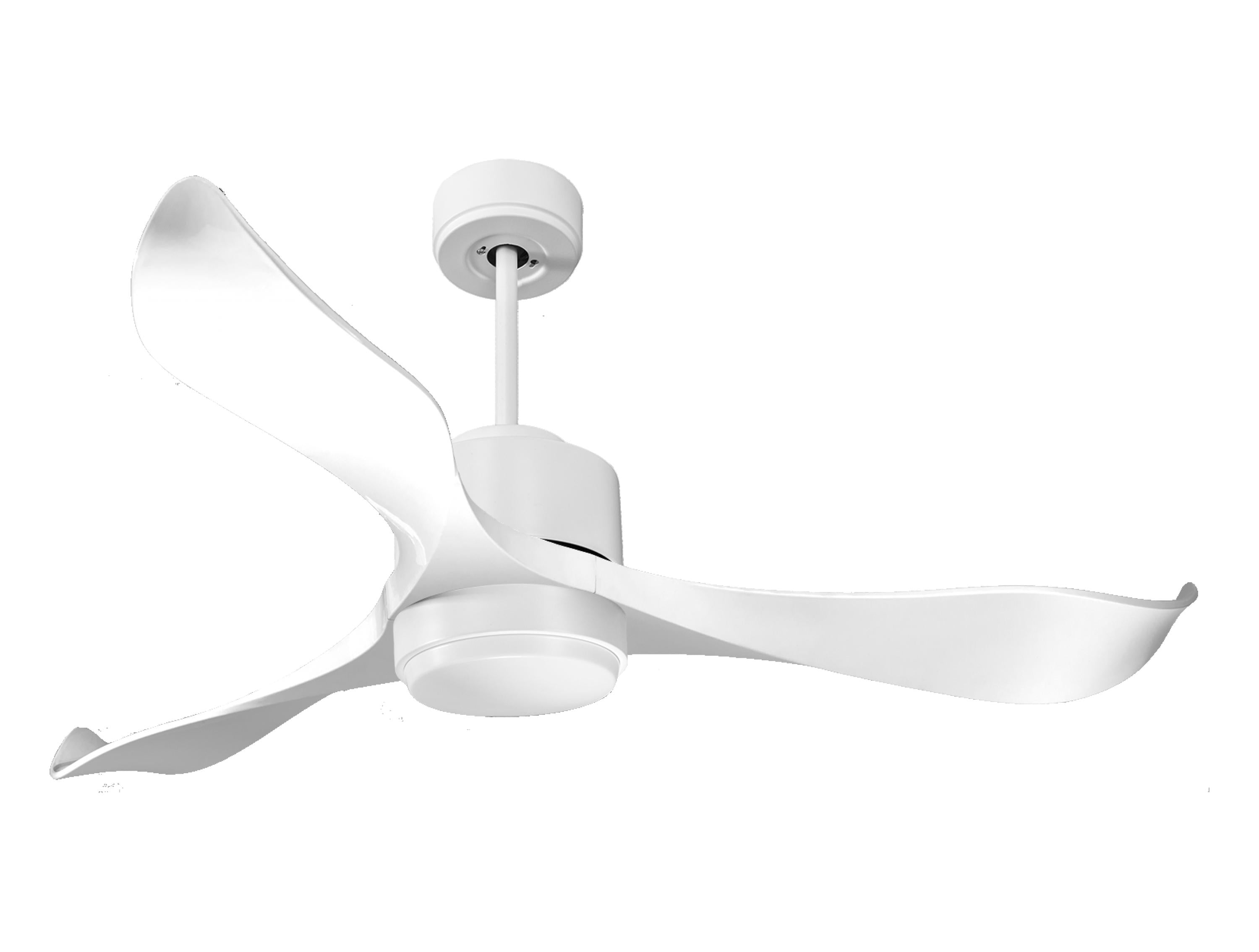 Las palas aerodinámicas de ABS otorgan al ventilador una gran ligereza. Han sido artesanalmente tratadas para estar equilibradas y no producir ningún tipo de vibración. Este modelo de 3 aspas en color blanco tiene un diámetro de 132 cm y alcanza hasta 187 RPM.