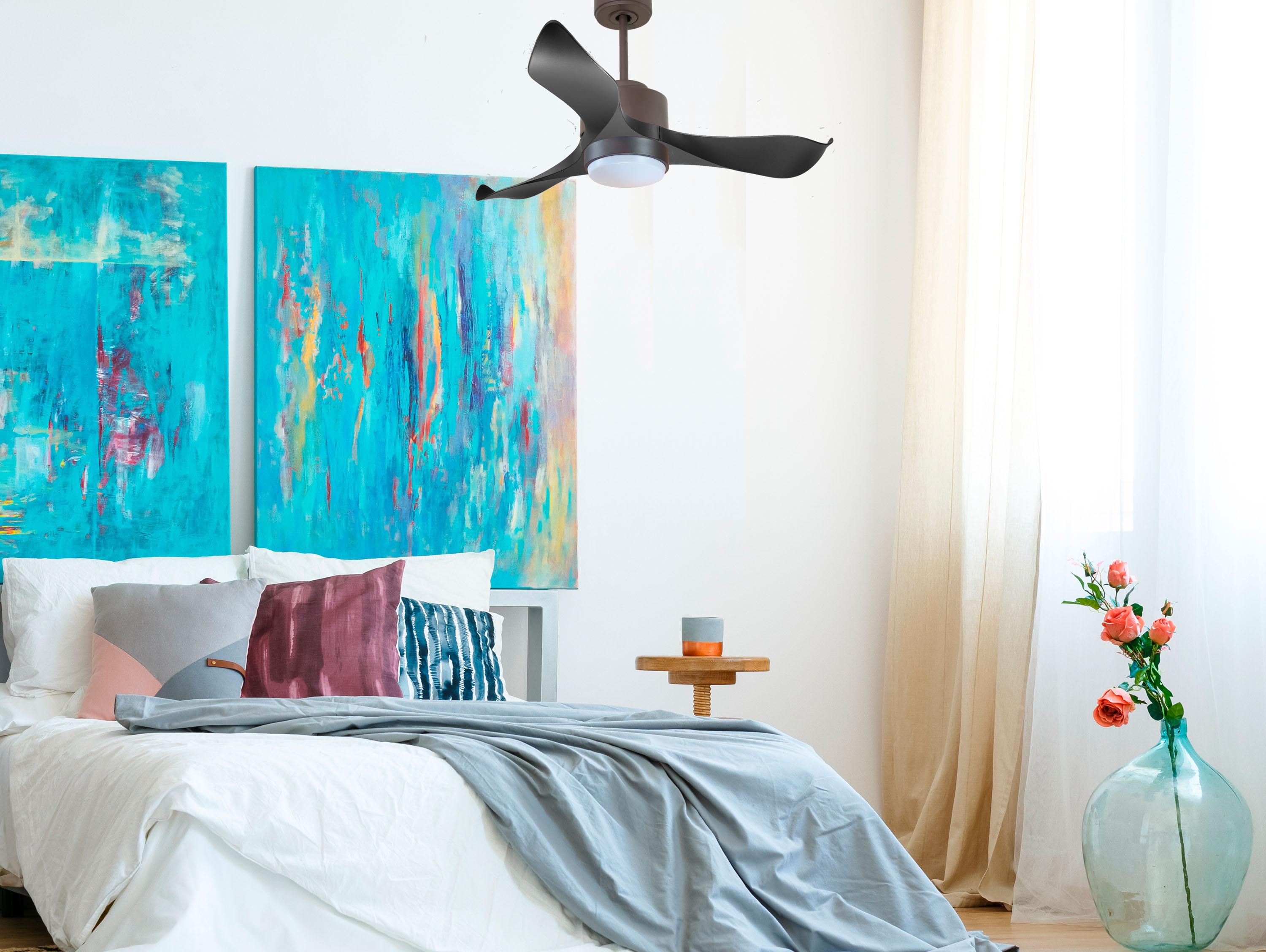 Las palas aerodinámicas de ABS otorgan al ventilador una gran ligereza. Han sido artesanalmente tratadas para estar equilibradas y no producir ningún tipo de vibración. Este modelo de 3 aspas en color negro tiene un diámetro de 106 cm y alcanza gran velocidad.