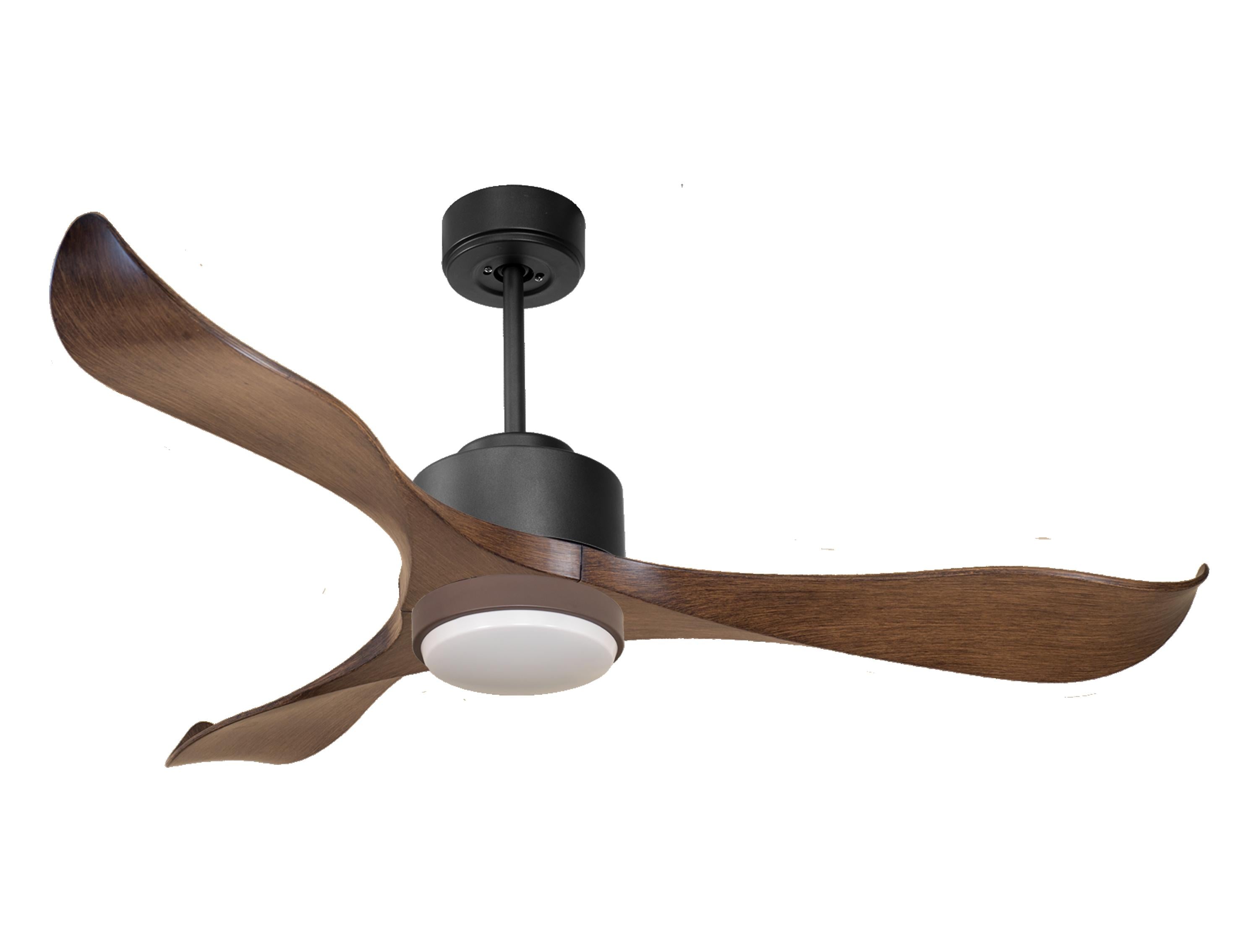 Las palas aerodinámicas de ABS otorgan al ventilador una gran ligereza. Han sido artesanalmente tratadas para estar equilibradas y no producir ningún tipo de vibración. Este modelo de 3 aspas en color marrón tiene un diámetro de 132 cm y alcanza gran velocidad.