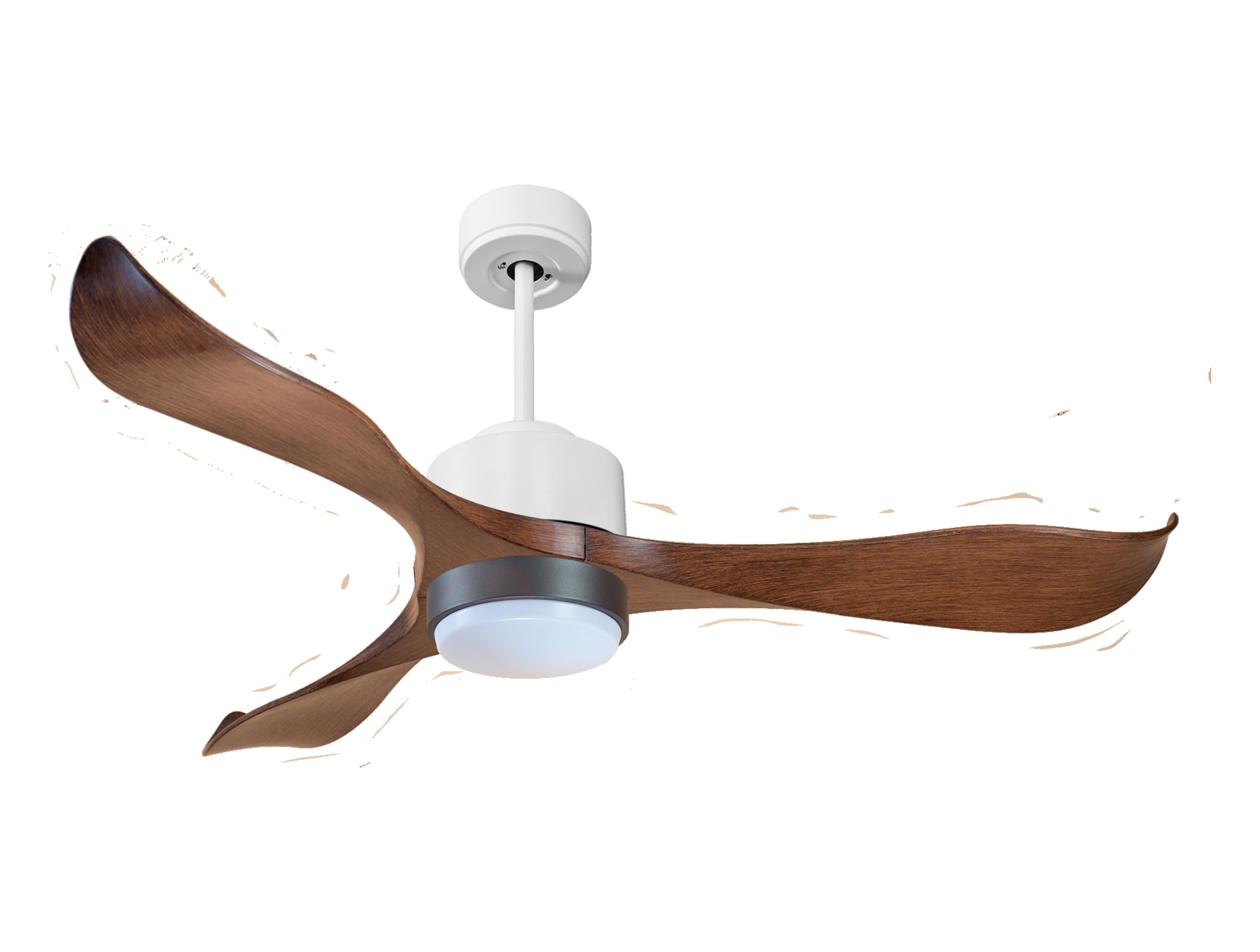 Las palas aerodinámicas de ABS otorgan al ventilador una gran ligereza. Han sido artesanalmente tratadas para estar equilibradas y no producir ningún tipo de vibración. Este modelo de 3 aspas en color marrón tiene un diámetro de 132 cm y alcanza gran velocidad.