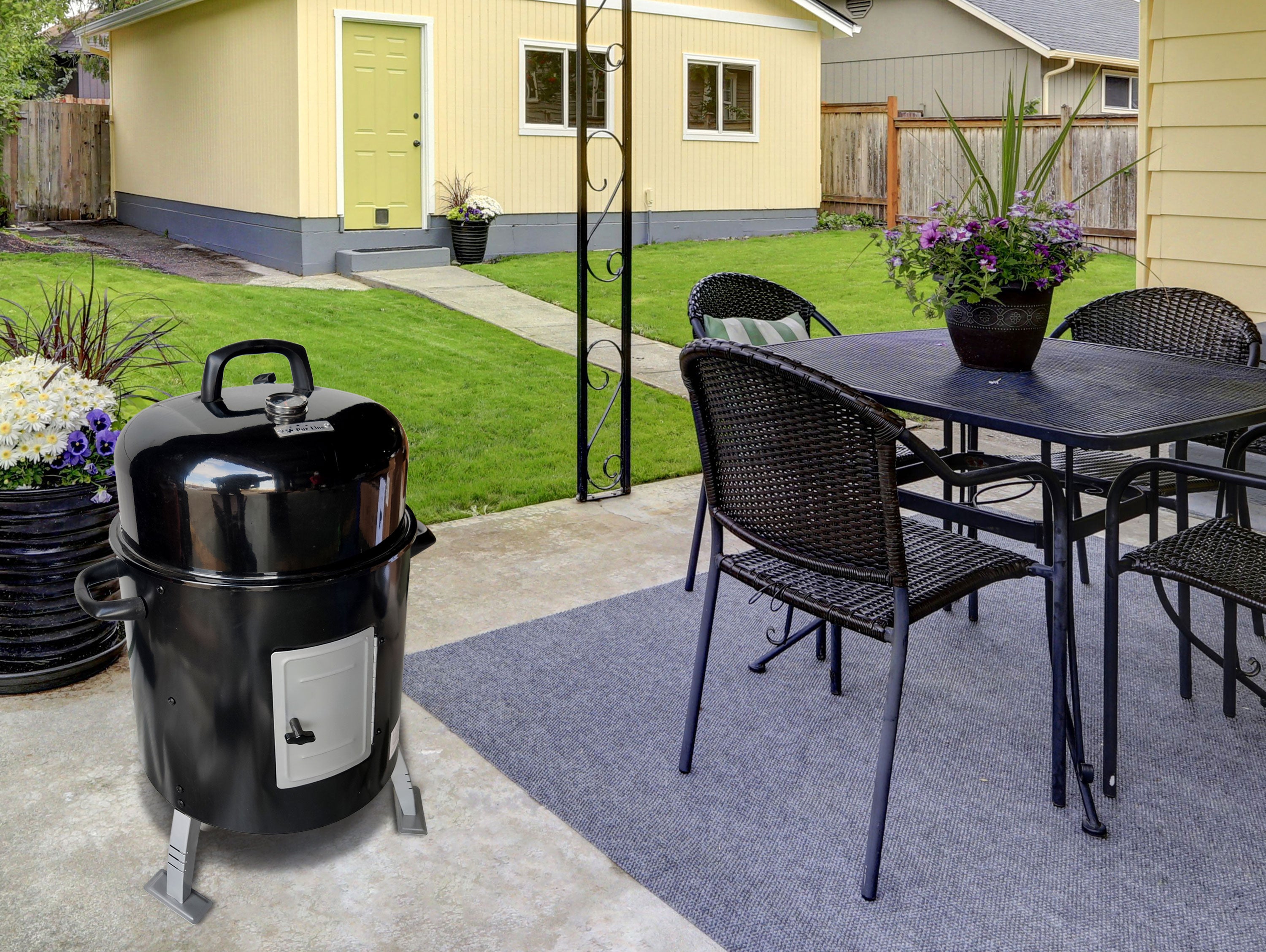 El EFP69 de Purline te ofrece una novedosa forma de cocinar, pues combina lo mejor de la parrilla y la barbacoa. Funciona a partir de un recipiente cerrado que produce humo a temperatura media que, en contacto con los alimentos, aportará un toque innovador a tu cocina, siendo ideal para ahumar carnes rojas, aves y pescados. Sólo necesitarás un poco de carbón o madera para comenzar a disfrutar de su sabrosa cocina.Su diseño vintage, fabricado en acero negro acabado en porcelana, aportará un toque único a tu jardín. Además dispone de una rejilla a través de la cual podrás regular la salida de humo y un termómetro en la parte superior para controlar en todo momento la temperatura.Su tamaño (LxPxH: 50 x 49 x 80 cm) y ligereza (9kg) lo hacen adecuado para cualquier tipo de barbacoa. Este modelo además incluye una tapa para garantizar tu seguridad, y tres asas para poder transportarlo fácilmente.