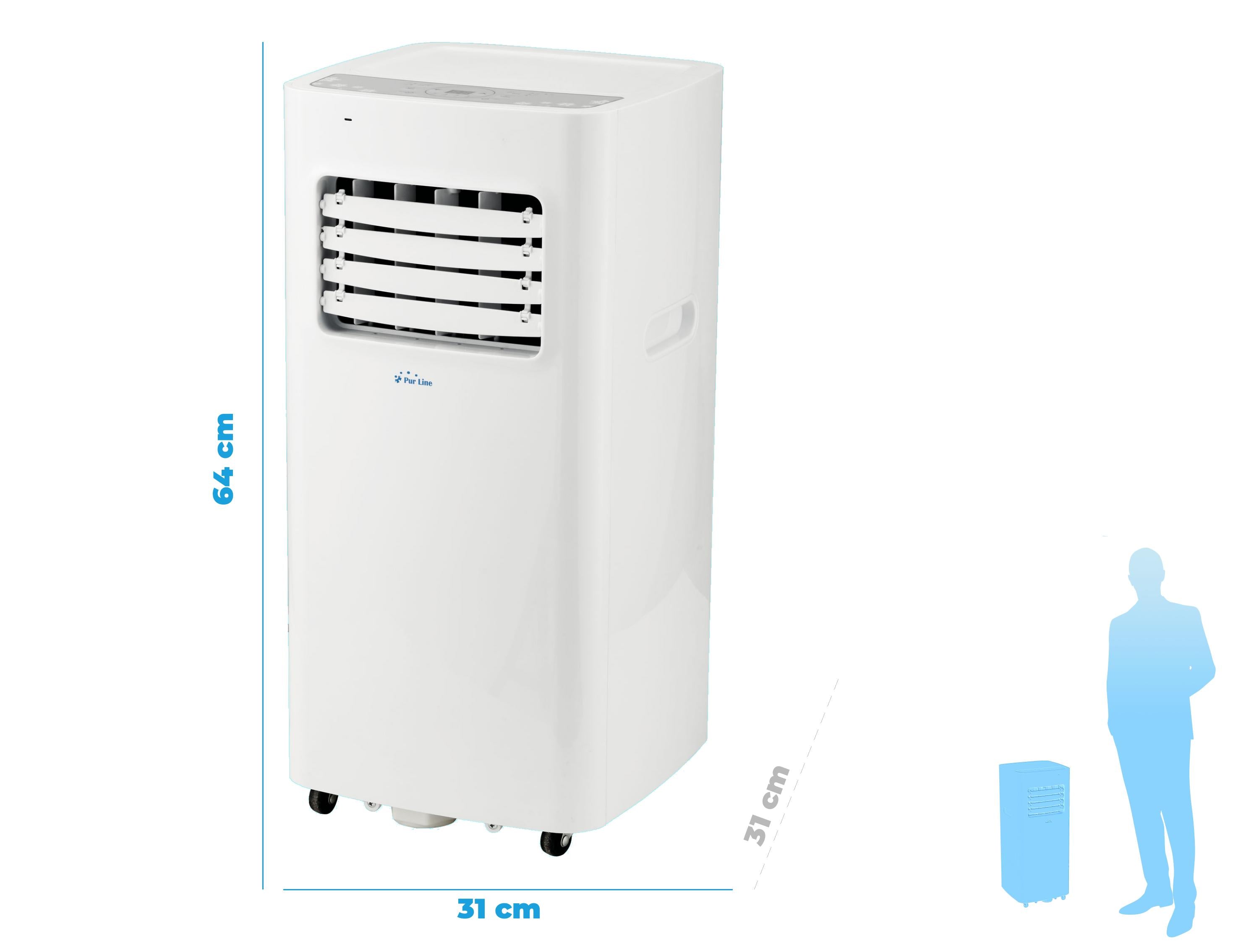 Con el aire acondicionado portátil COOLY 7000 de Purline, podrá tener una temperatura fresca en cualquier lugar a bajo coste.El COOLY 7000 tiene 1750 frigorías, un sistema de deshumidificación y de filtración de aire, una función de refrigeración y ventilación, y un rango de temperatura de 16º a 31º. También dispone de dos velocidades, mando a distancia y temporizador, sin olvidar un consumo máximo de 750W.Sus dimensiones (LxPxH: 31x31x64 cm) y su peso (21kg) facilitan su desplazamiento, gracias sobre todo a sus cuatro ruedas, que permiten moverlo para adaptarlo a sus necesidades.El COOLY 7000 viene con un tubo de salida de aire para que pueda expulsar el aire por una ventana o una puerta.