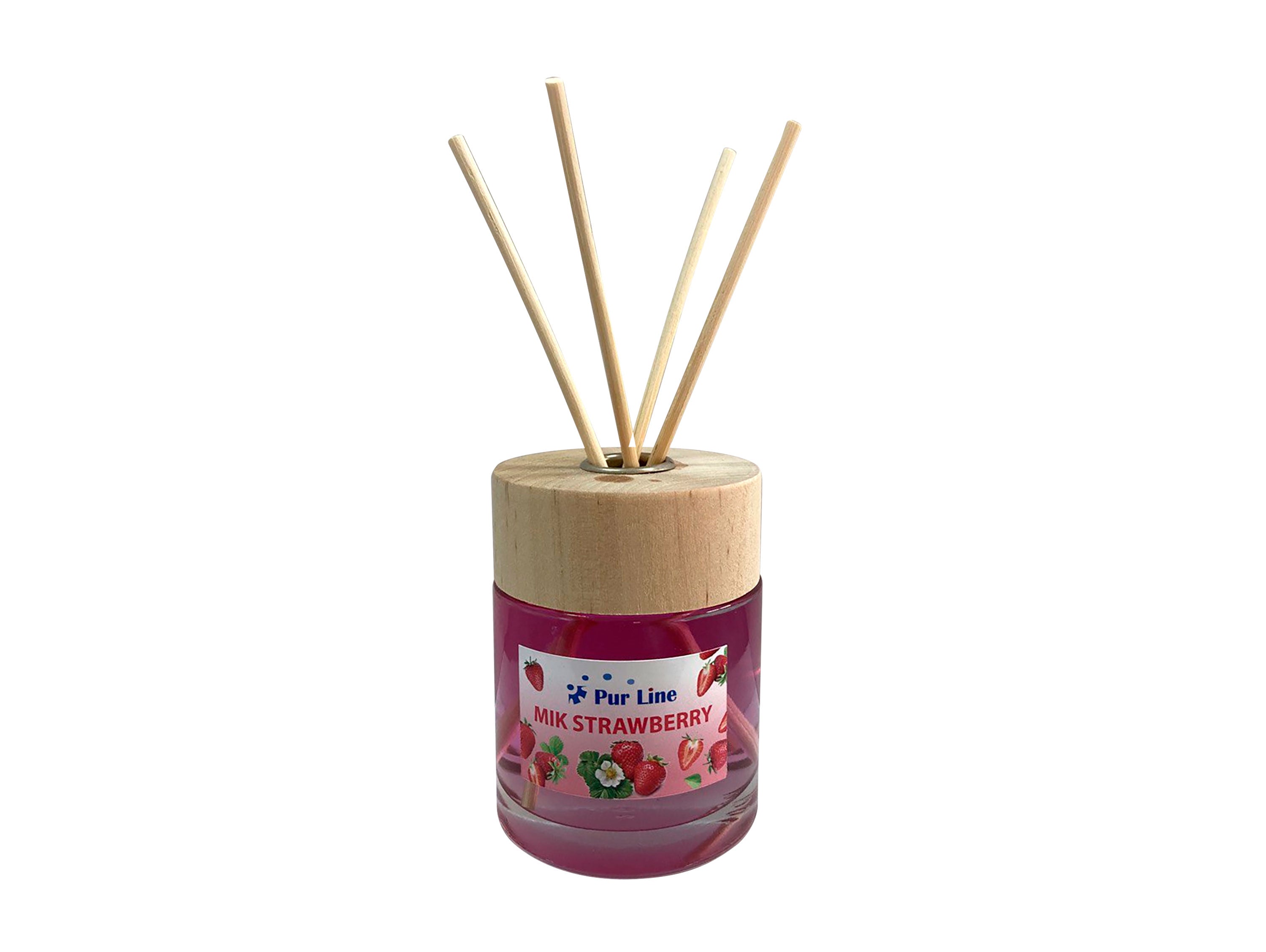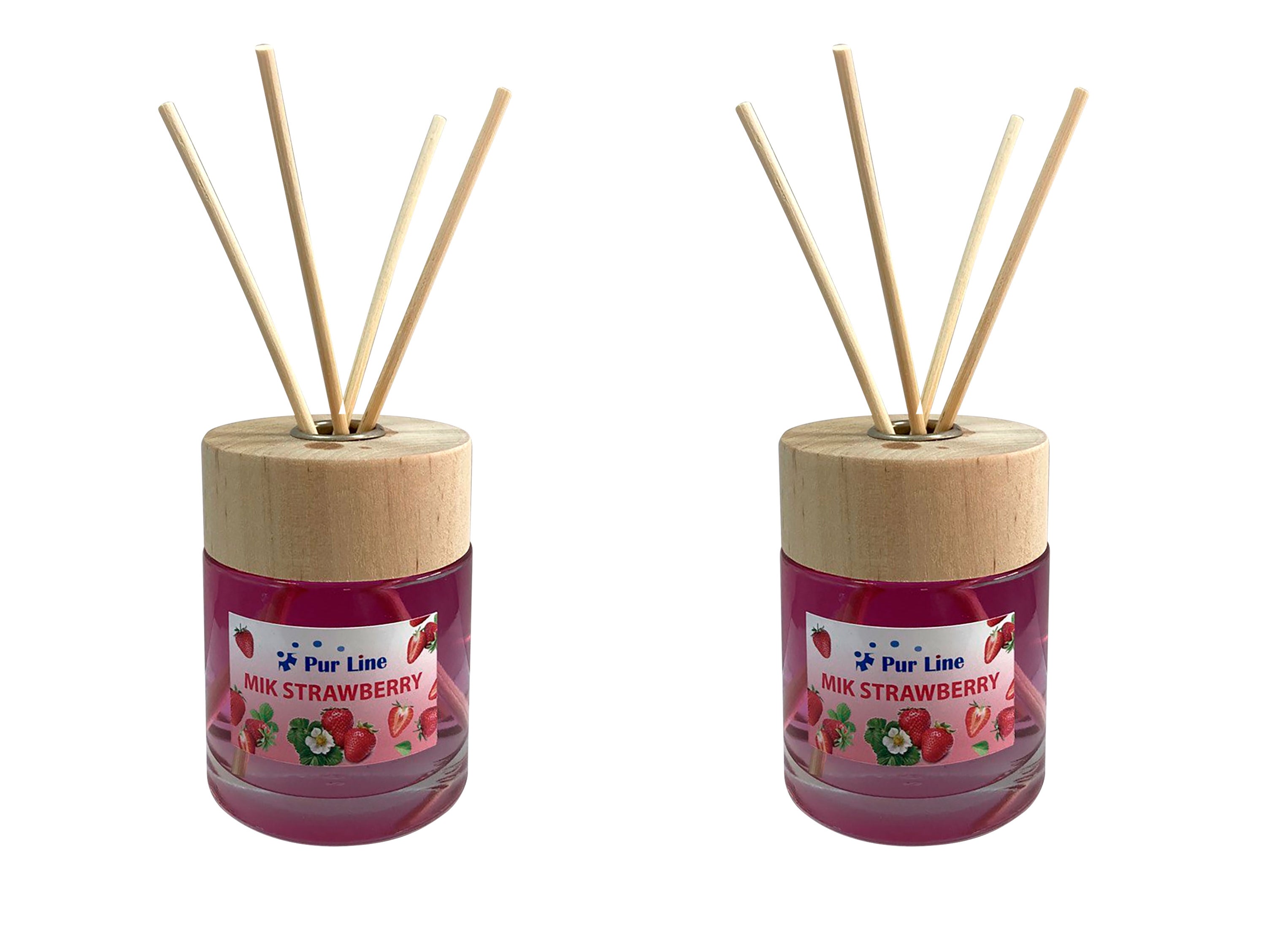 Ambientadores para uso doméstico con varillas de fragancia que producen una difusión intensa y prolongada, granos de fresa. Elimina malos olores de tu casa, ambientadores de larga duración con un fuerte olor. 100 ml de crisol de vidrio con 4 varillas de rata y tapas de madera.