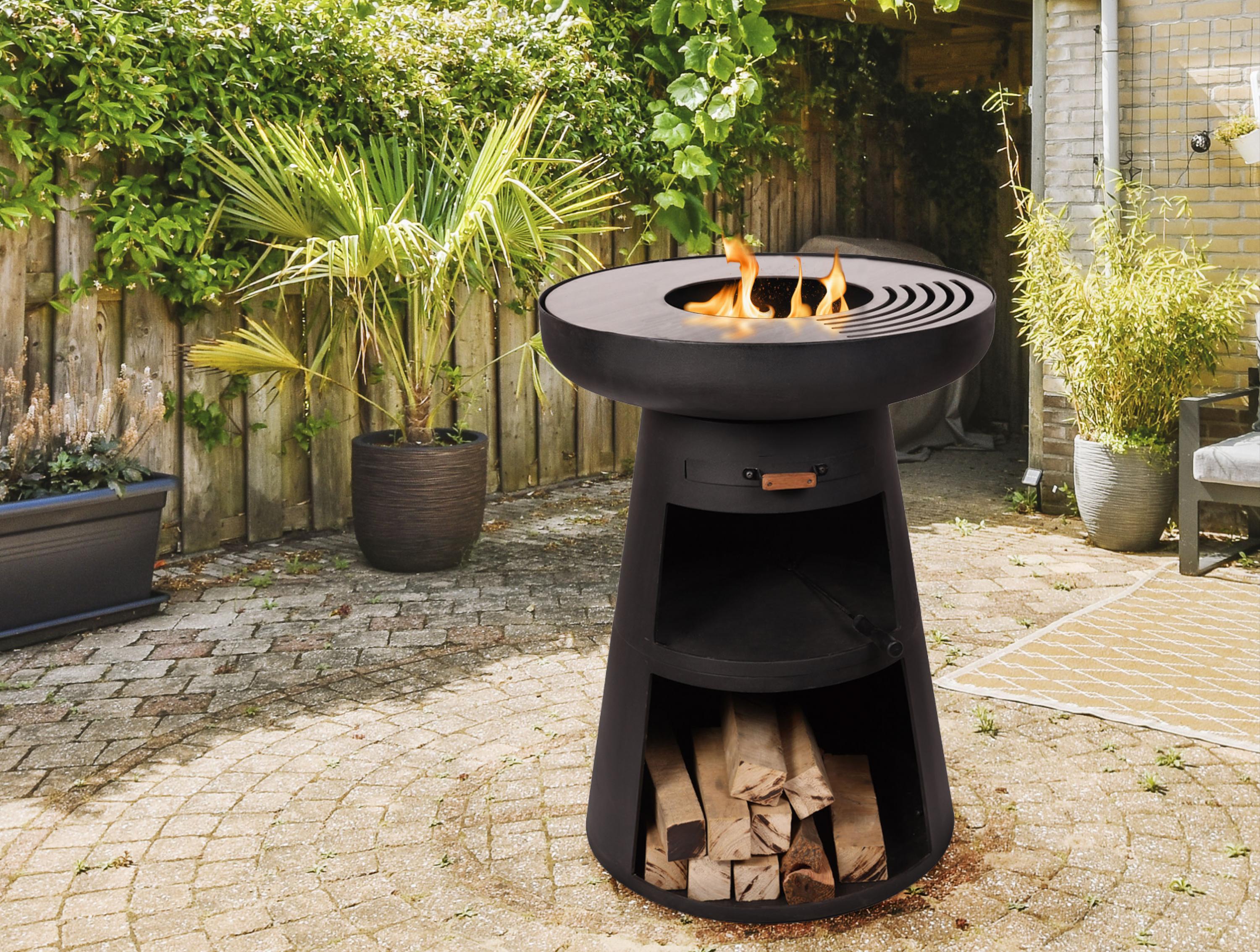 Barbacoa redonda con plancha y grill en acero color negro