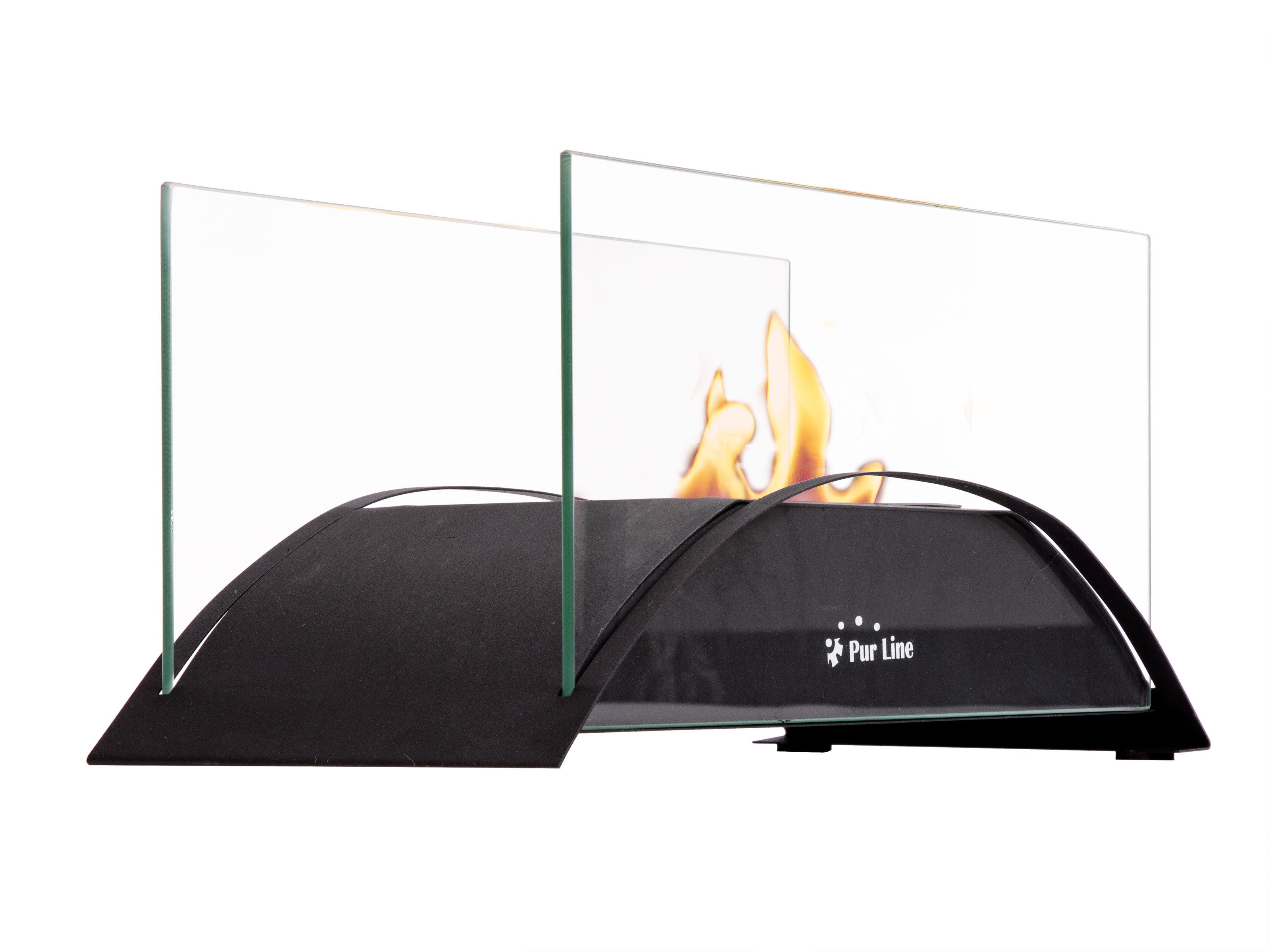 Biochimenea de sobremesa semicircular y doble vidrio templado