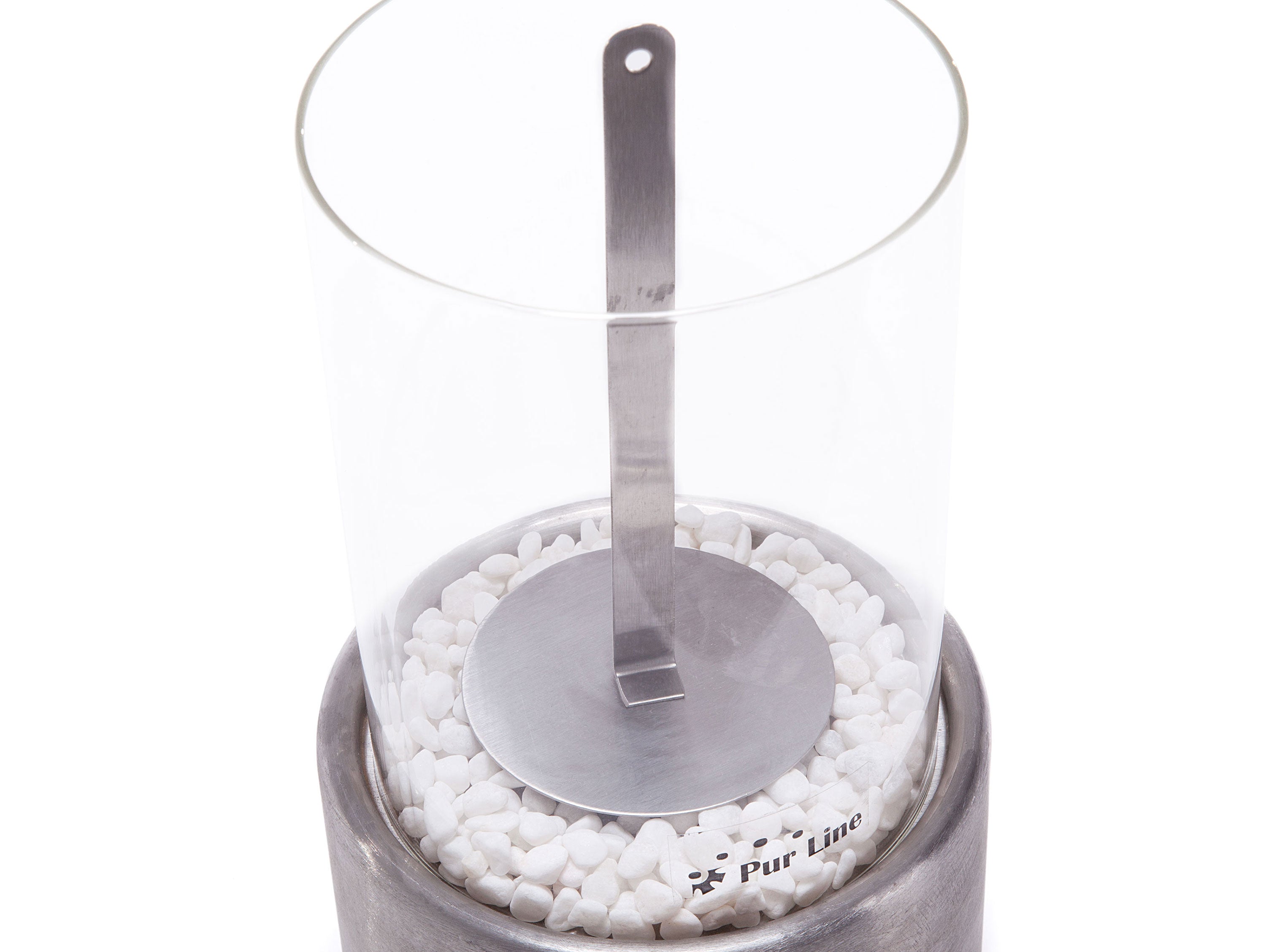 ¿Alguna vez pensaste en tener una chimenea en tu casa? Gracias a Purline ya puedes conseguirlo, solo necesitas esta chimenea, un poco de su combustible líquido de origen natural y rápidamente tendrás un fuego con llamas y calor reales en tu salón, dormitorio o despacho, limpia, sin humos ni cenizas y de fácil mantenimiento. Además incorpora fibra cerámica para garantizar su seguridad.Su tamaño (LxPxH: 16 x 27 x 16 cm), su ligereza (2,3kg) y su diseño moderno la hacen perfecta para usar en terrazas y jardines, en suelo o sobre muebles, ayudando a crear un ambiente acogedor, cálido y genuino. La chimenea DISIS es un modelo cilíndrico con base de piedras decorativas, fabricada íntegramente en acero inoxidable y cristal de vidrio templado y con un depósito de 0,15L.