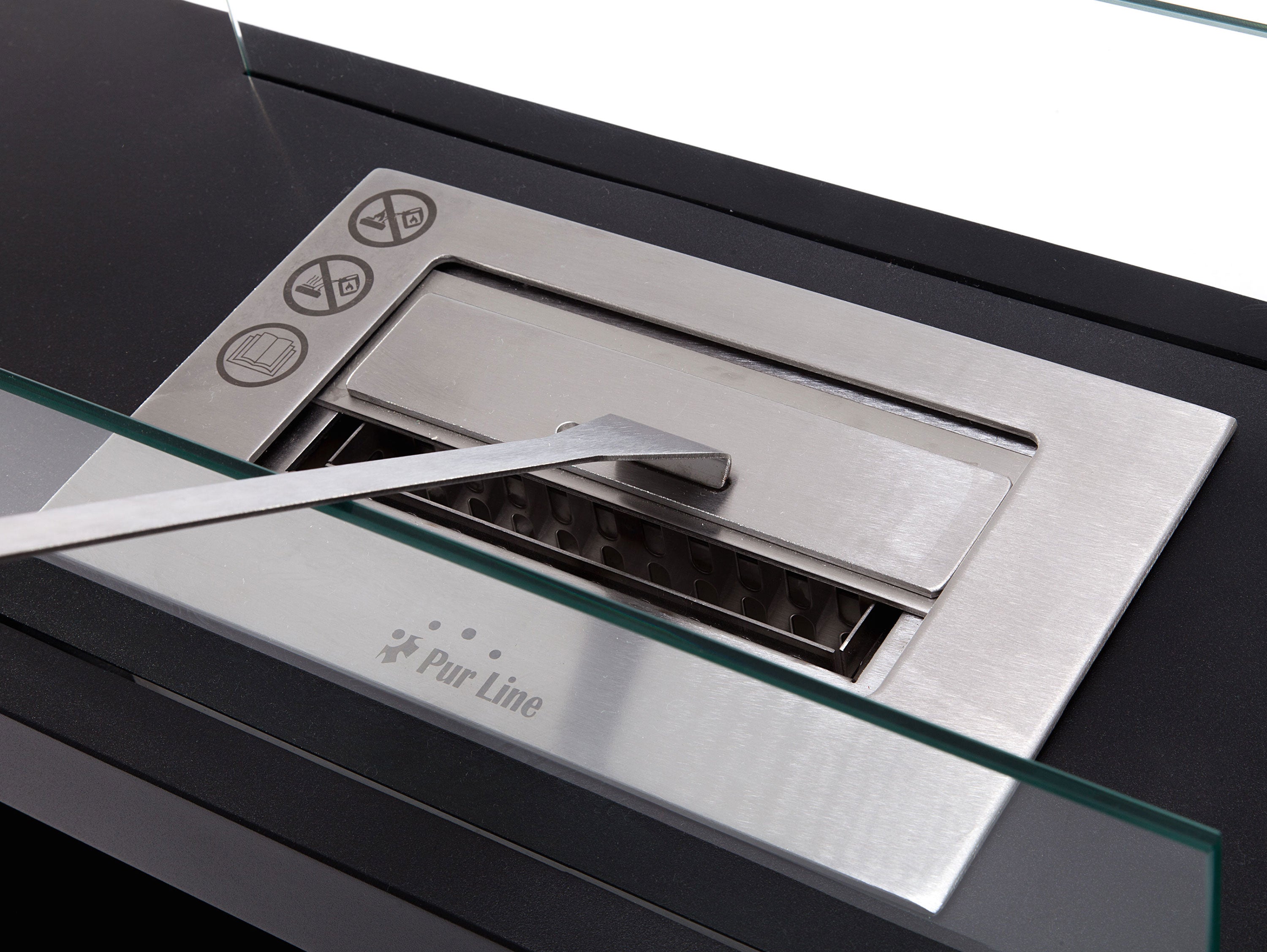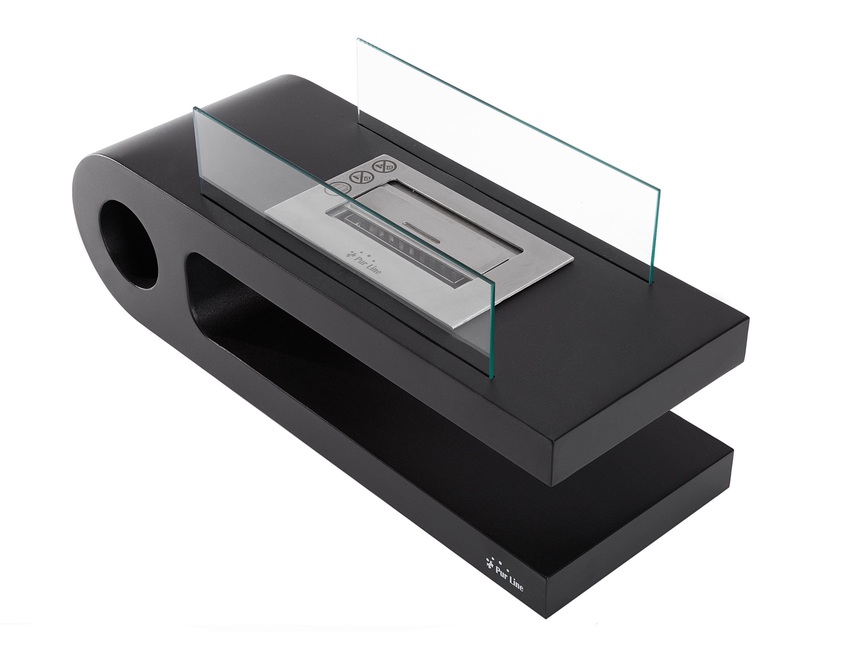 Chimenea de etanol diseño de mesa en acero negro y cristal templado