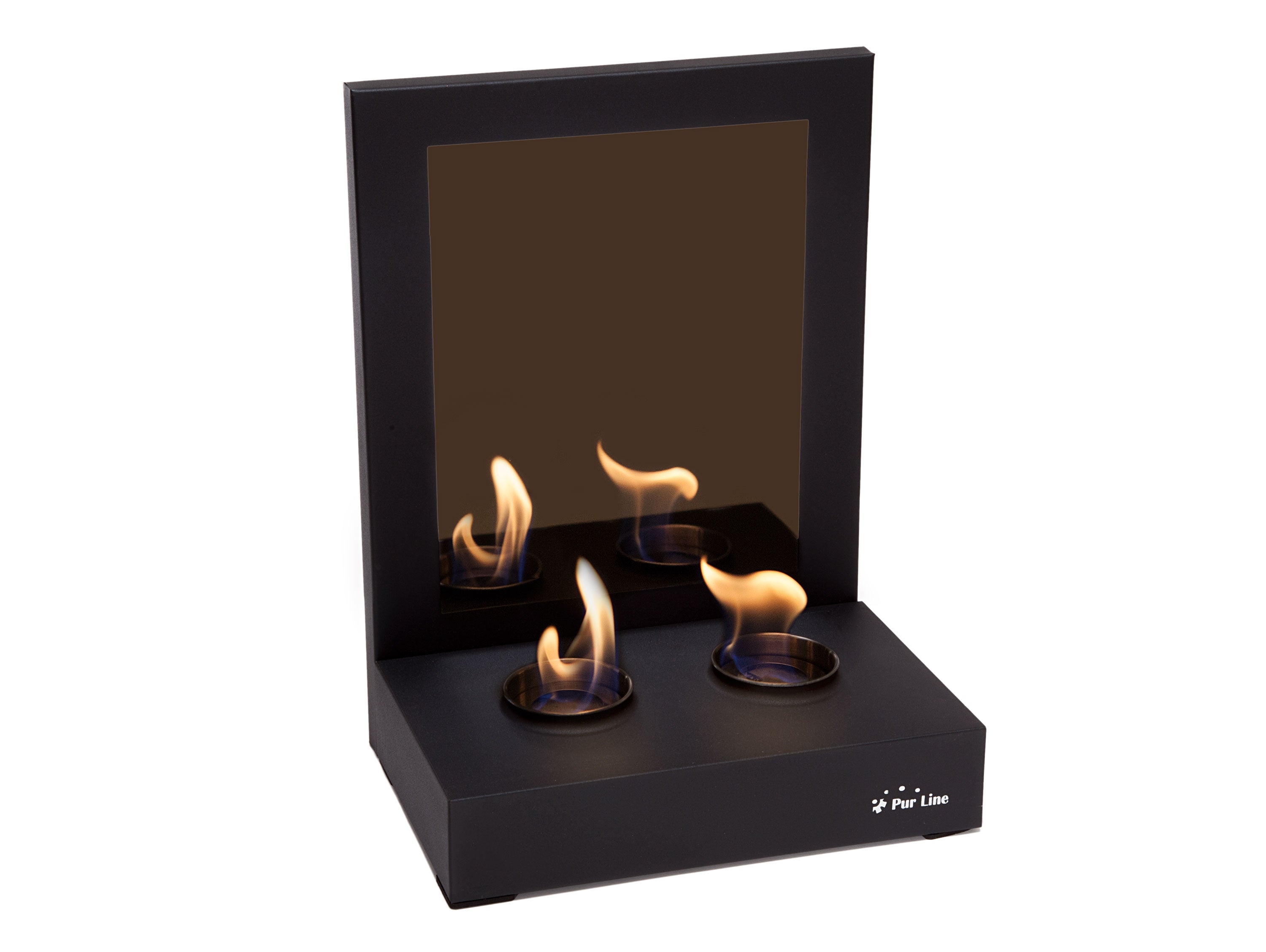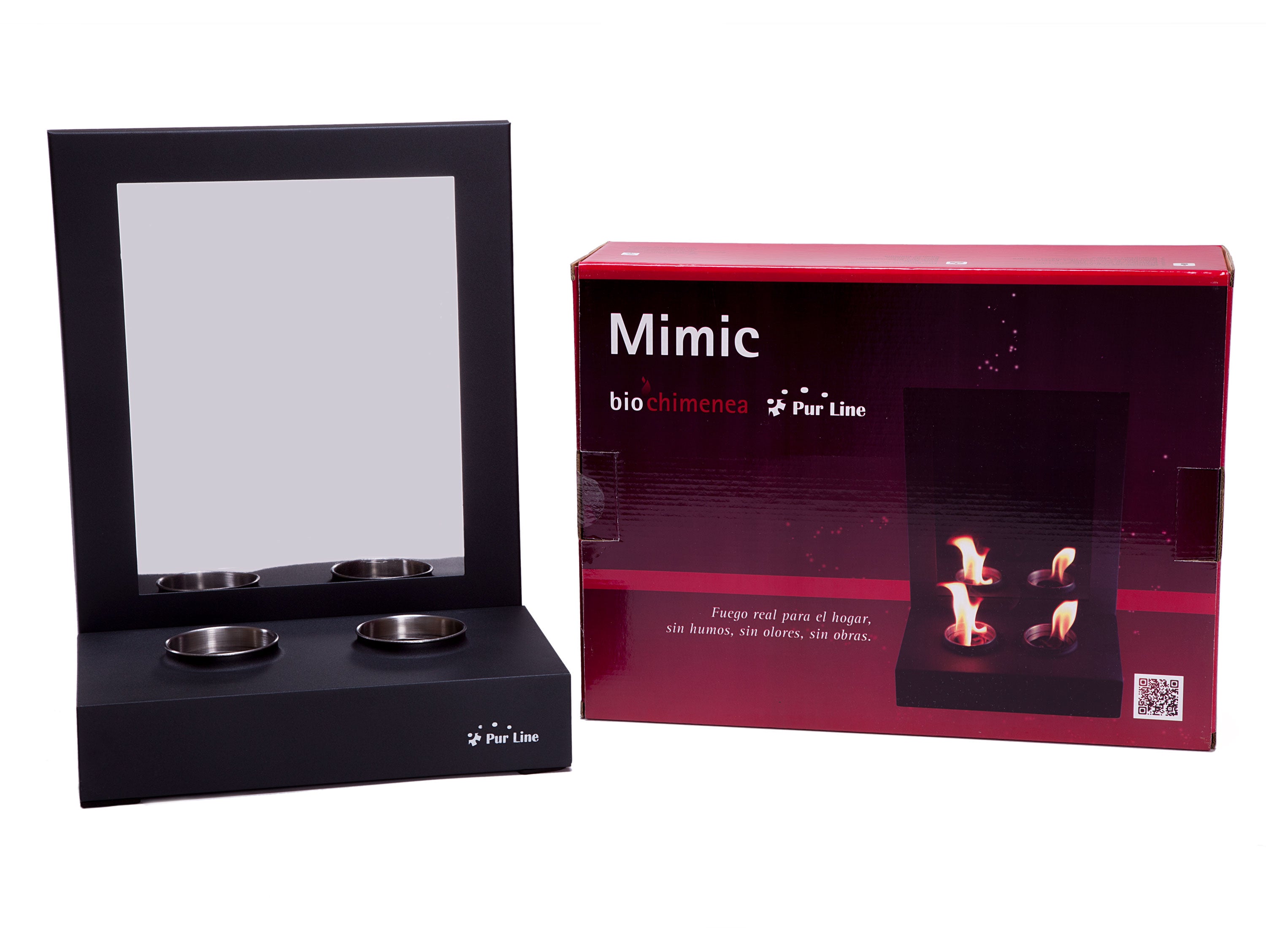 La biochimenea MIMIC está fabricada en acero acabado en negro, con un espejo trasero que refleja las llamas de sus dos depósitos, con capacidad de 0.15L cada uno. Se trata de un diseño sencillo y sofisticado que captará la atención de todos los presentes gracias al bonito efecto de sus llamas. Además su potencia calorífica es equivalente a 1.2KW.
