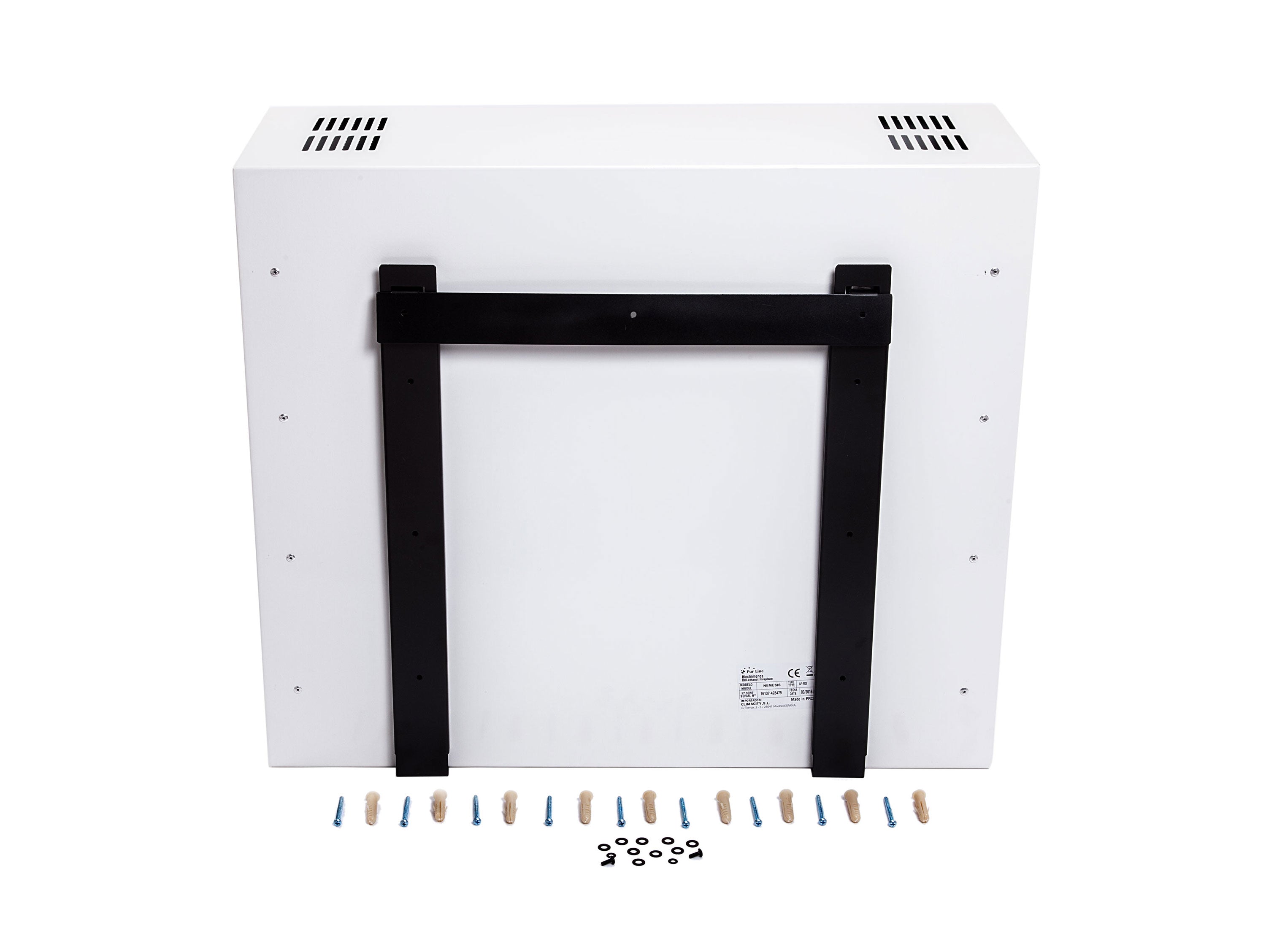 Incluye kit de colgado, y su tamaño (LxPxH: 70 x 24.5 x 55 cm), su solidez (15kg) y su diseño moderno la hacen perfecta para poner en la pared o encastrarla, sin necesidad de obras ni salida de humos, ayudando a crear un ambiente acogedor, cálido y genuino.