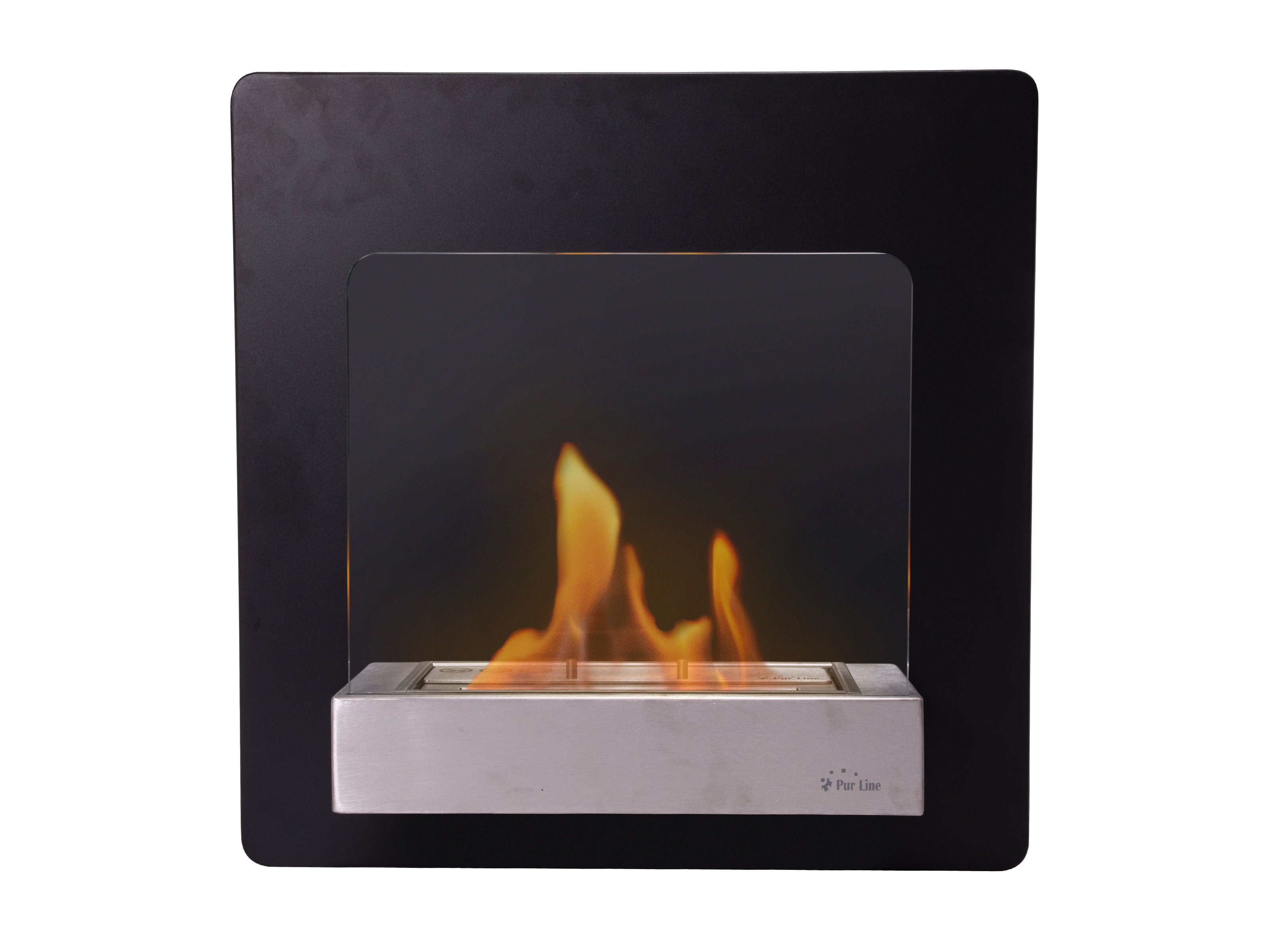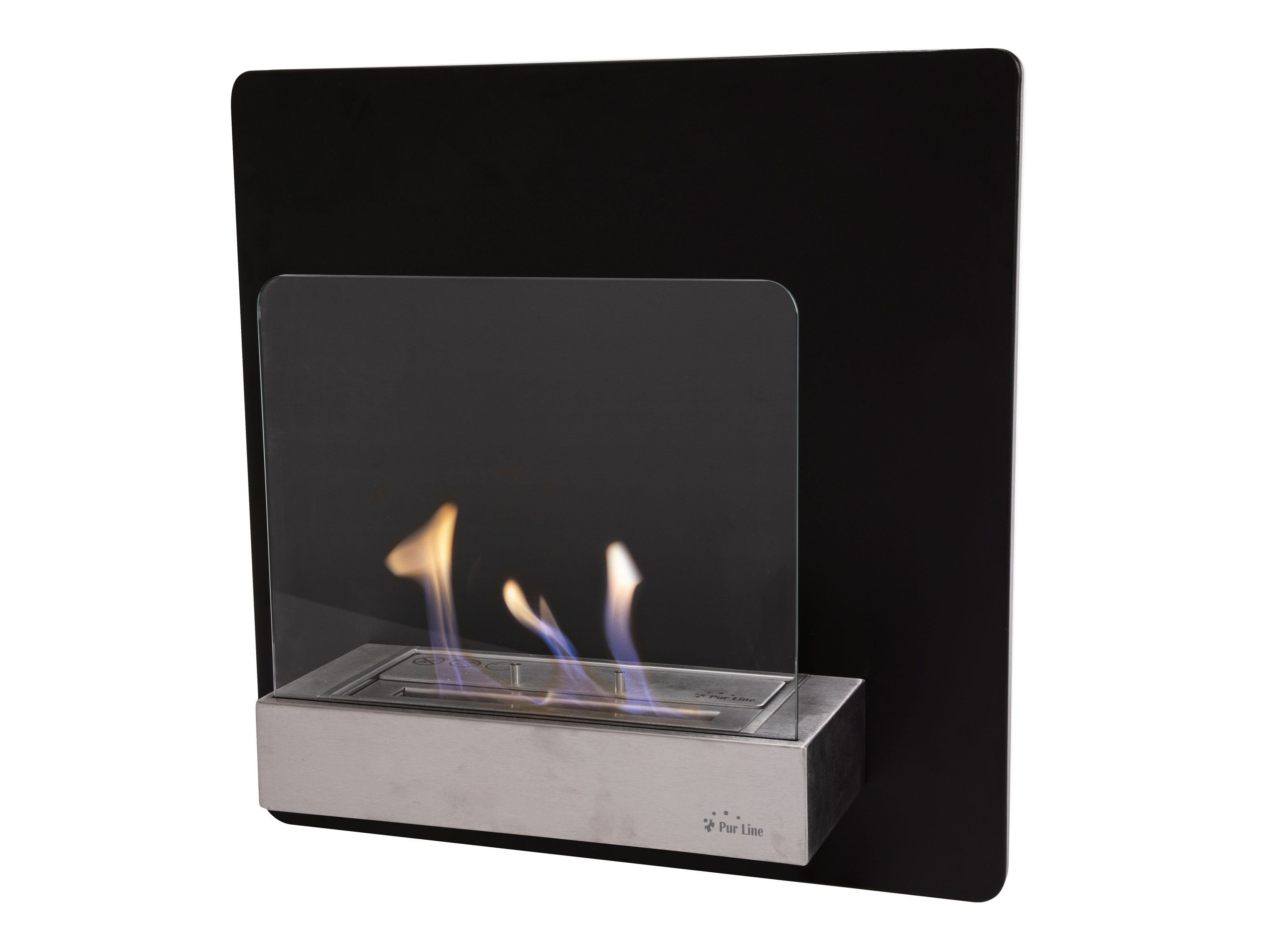 Chimenea de etanol mural en acero negro y cristal templado
