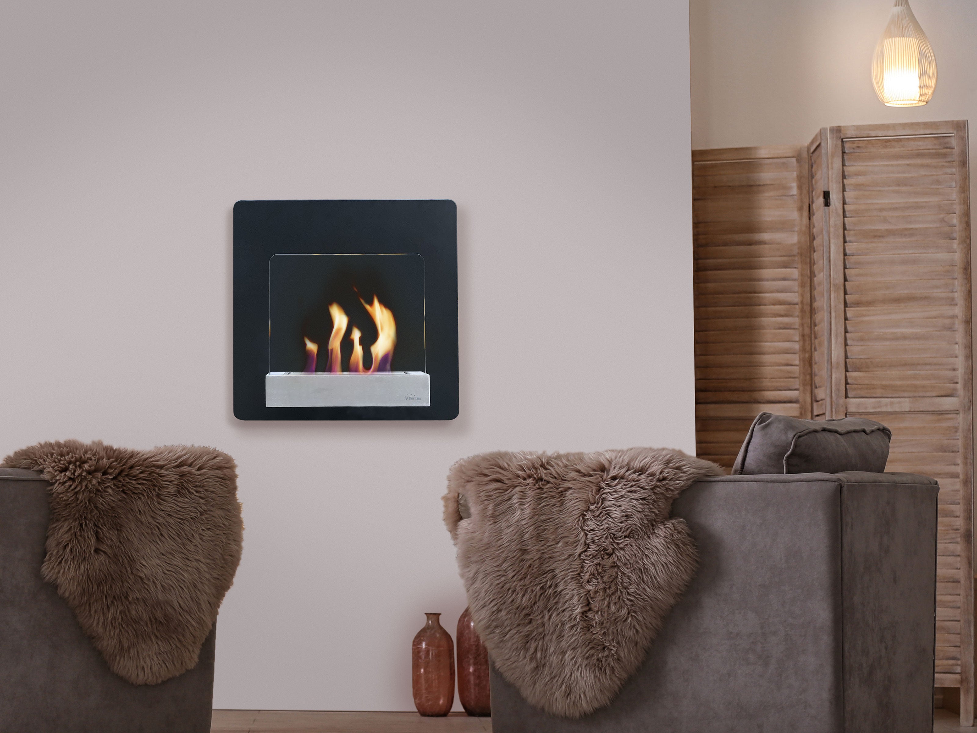 ¿Alguna vez pensaste tener una chimenea en tu casa? Gracias a Purline ya puedes conseguirlo, solo necesitas esta biochimenea, un poco de su combustible líquido de origen natural y rápidamente tendrás un fuego con llamas y calor reales en tu salón, dormitorio o despacho, limpia, sin humos ni cenizas y de fácil mantenimiento. Además incorpora fibra cerámica para garantizar su seguridad.Incluye kit de colgado, y su tamaño (LxPxH: 60 x 20 x 60 cm), su solidez (18.5kg) y su diseño moderno la hacen perfecta para poner en la pared o encastrarla, sin necesidad de obras ni salida de humos, ayudando a crear un ambiente acogedor, cálido y genuino. La HYPNOS es una de nuestras biochimeneas, fabricada en acero acabado en negro, cuenta con un cristal de vidrio templado en la parte frontal a través del cual podrás disfrutar de las llamas de forma completamente segura. Su diseño moderno y personal incluye un bloque de combustión de 1.5L de capacidad que ofrece la posibilidad de regular la llama, y su potencia calorífica es equivalente a 2KW.