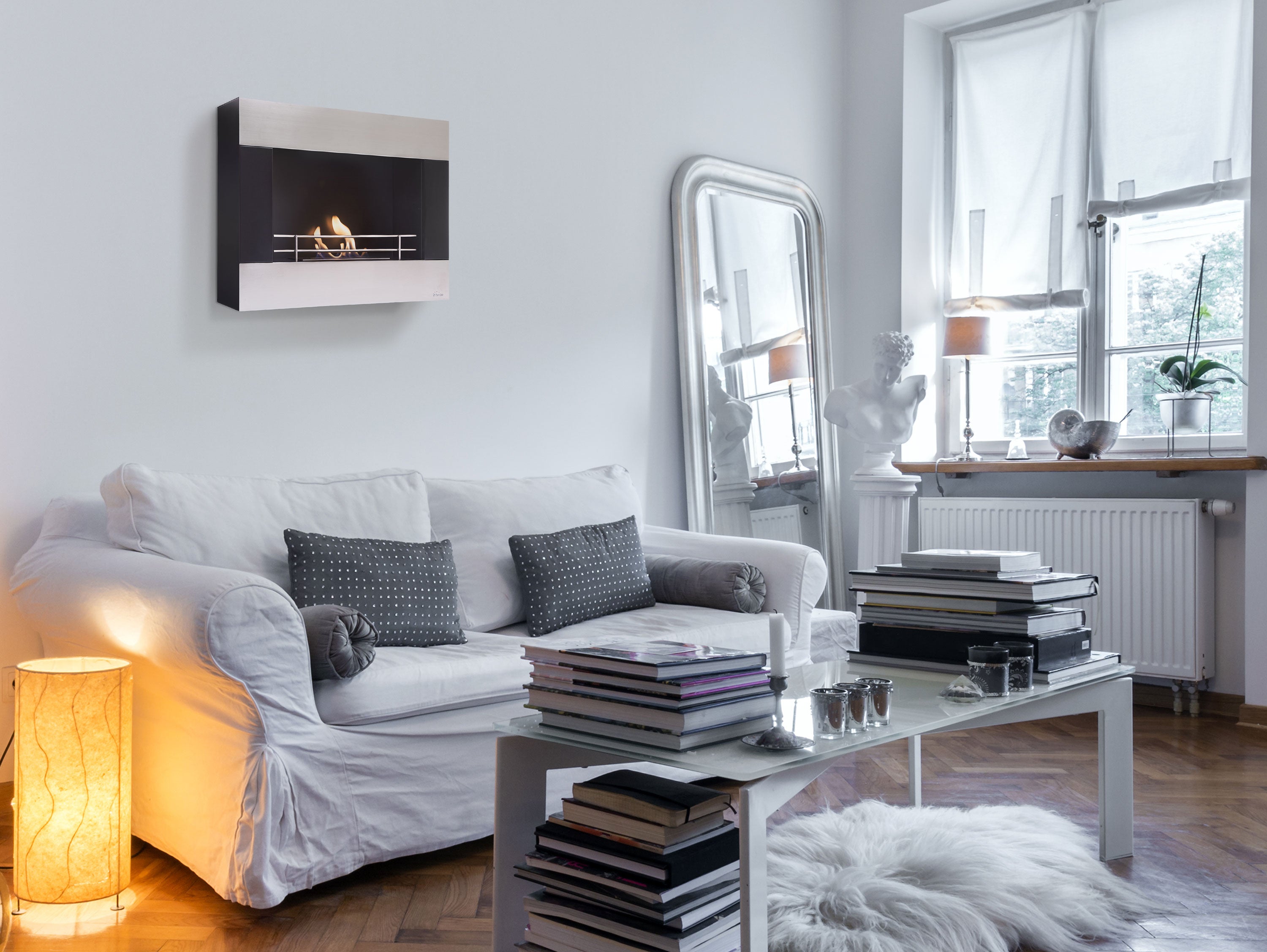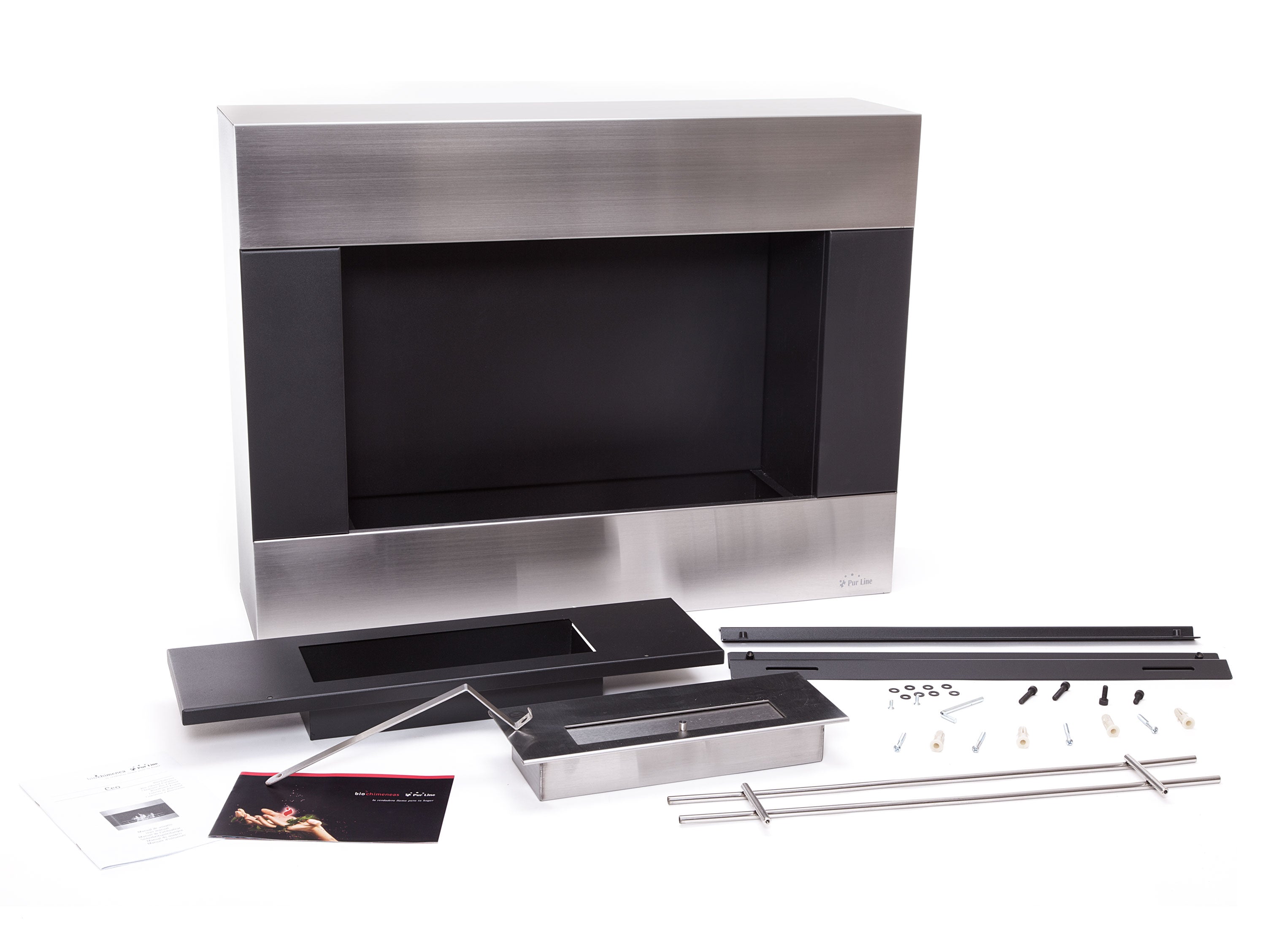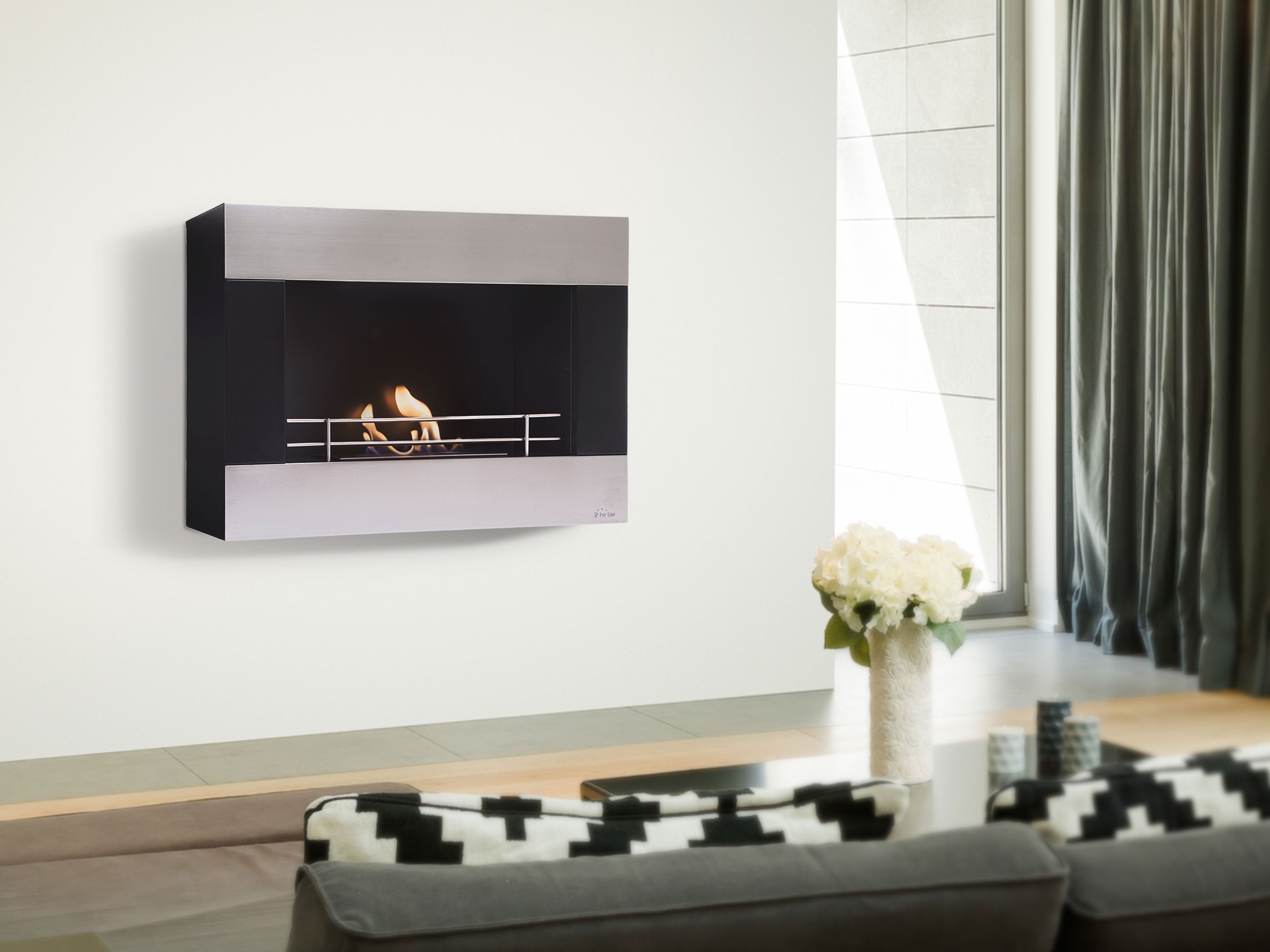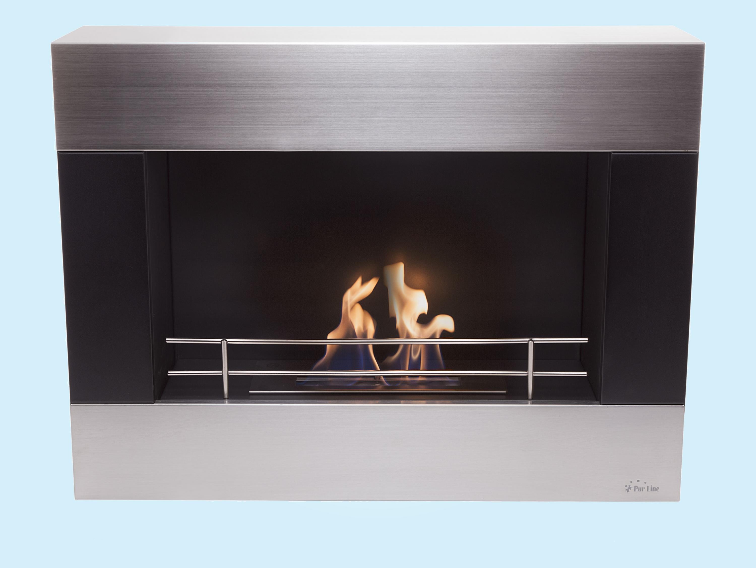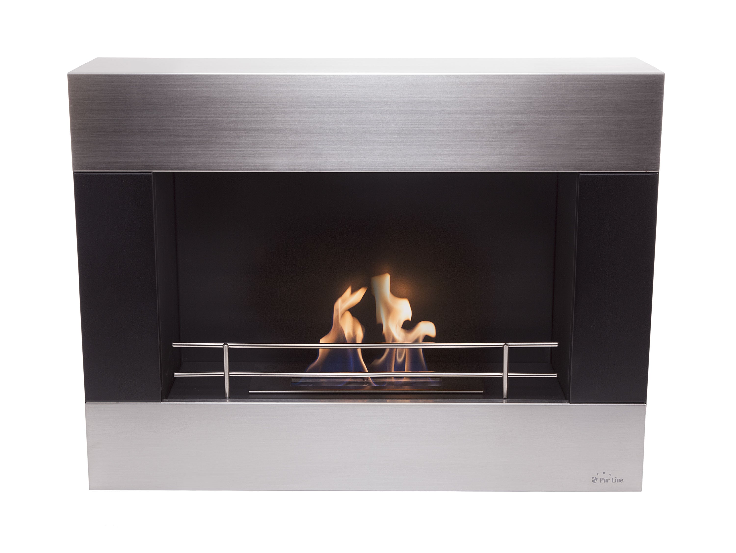 Chimenea de etanol mural de 2000W, moderno diseño rectangular de acero con barras cromadas