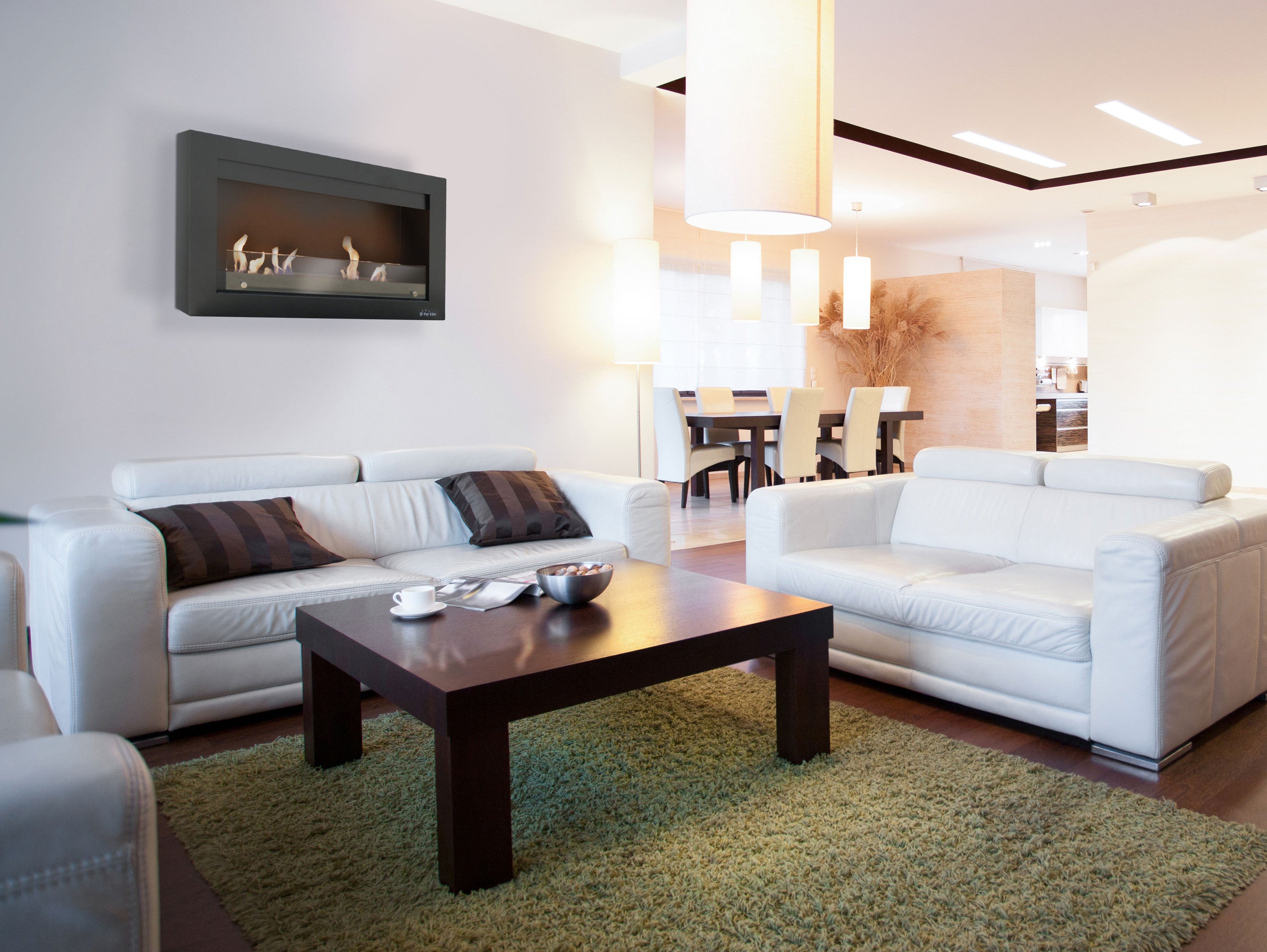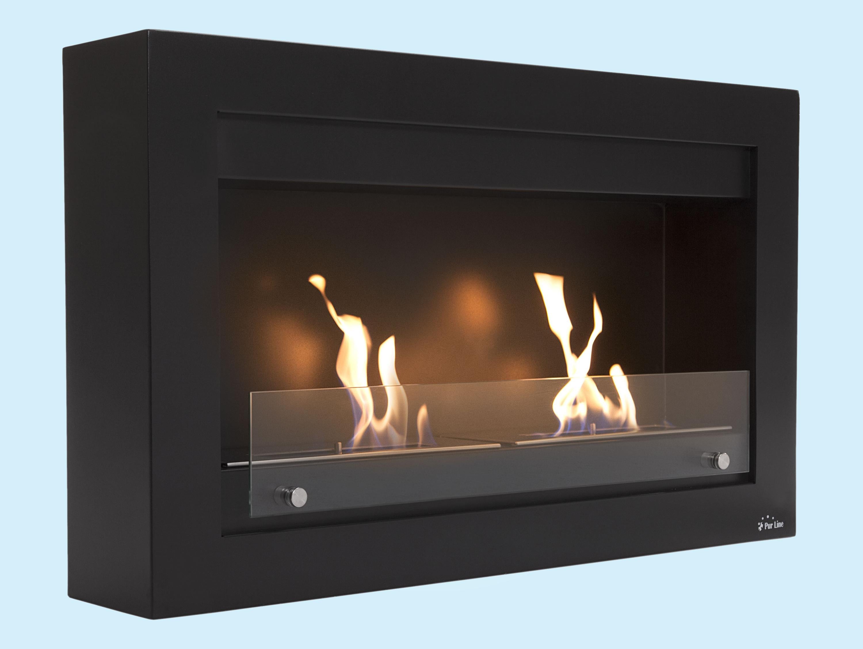Chimenea de etanol mural de 4000W, diseño rectangular de gran anchura en acero negro y doble llama