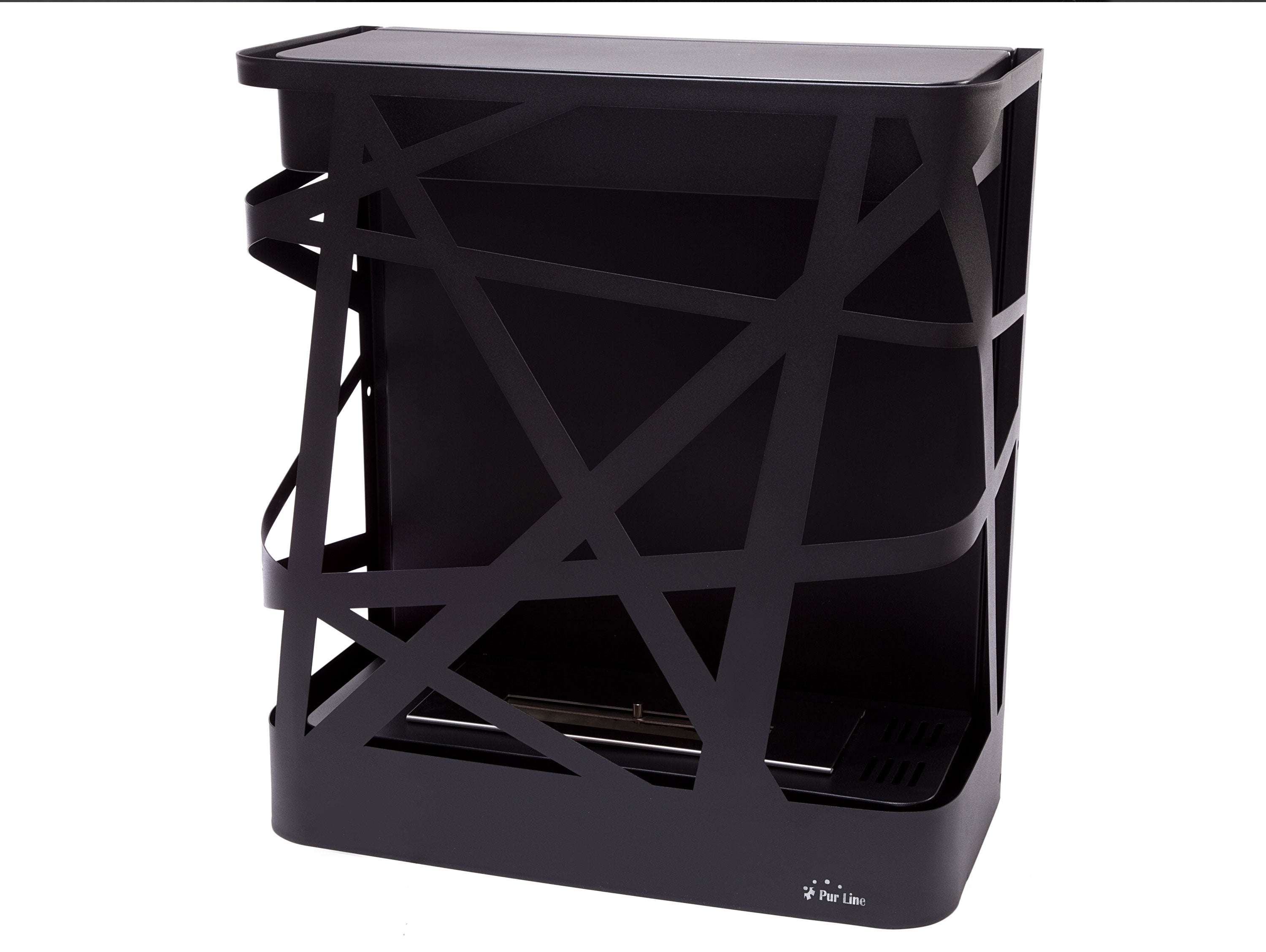 ¿Alguna vez pensaste tener una chimenea en tu casa? Gracias a Purline ya puedes conseguirlo, solo necesitas esta biochimenea, un poco de su combustible líquido de origen natural y rápidamente tendrás un fuego con llamas y calor reales en tu salón, dormitorio o despacho, limpia, sin humos ni cenizas y de fácil mantenimiento. Además incorpora fibra cerámica para garantizar su seguridad.Incluye kit de colgado, y su tamaño (LxPxH: 55 x 25 x 60 cm), su ligereza (10kg) y su diseño moderno la hacen perfecta para poner en la pared o encastrarla, sin necesidad de obras ni salida de humos, ayudando a crear un ambiente acogedor, cálido y genuino. La biohimenea DEMETER es un moderno diseño fabricado en acero esmaltado negro que incluye una novedad exclusiva, y es que incluye un panel frontal de tiras entrelazadas que puede ser extraído fácilmente. Su depósito es de 1.2L de capacidad y su potencia calorífica es equivalente a 2KW.