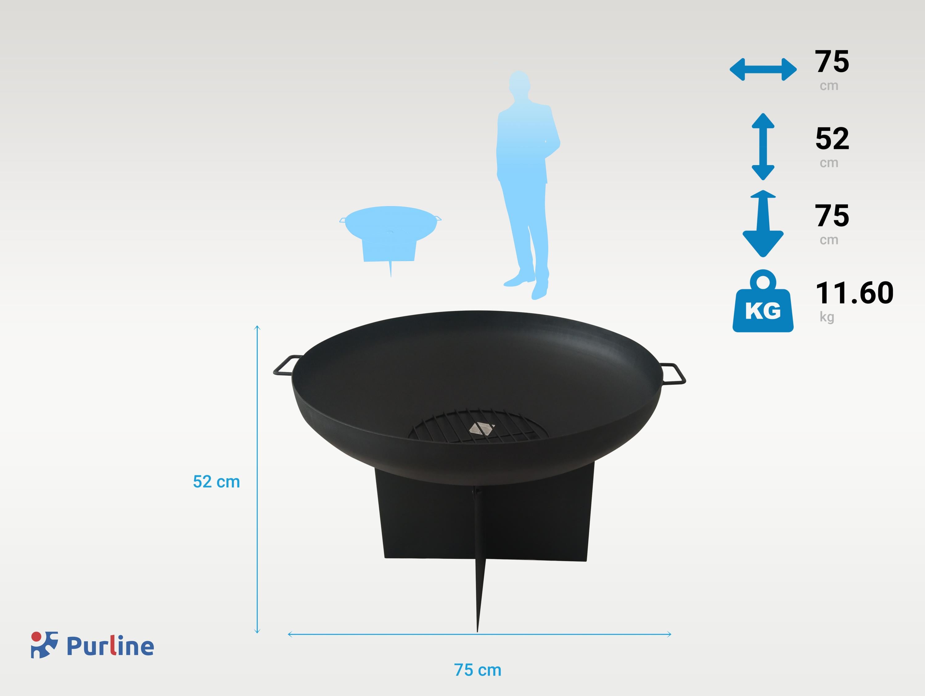 El brasero EFP61 de Purline combina un diseño clásico y personal con la utilidad de una estufa. Fabricado en acero con acabado en negro, funciona con leña o carbón vegetal y es una fuente de calor ecológica y efectiva.Apto para usar en exteriores, se compone de un brasero circular sostenido sobre un pie en forma de cruz.Su tamaño (LxPxH: 75 x 75 x 42 cm) y solidez (13kg) te permitirán llevarlo allí donde necesites, ya sea tu jardín o terraza. Además no requiere de instalación y su limpieza no te supondrán un problema.