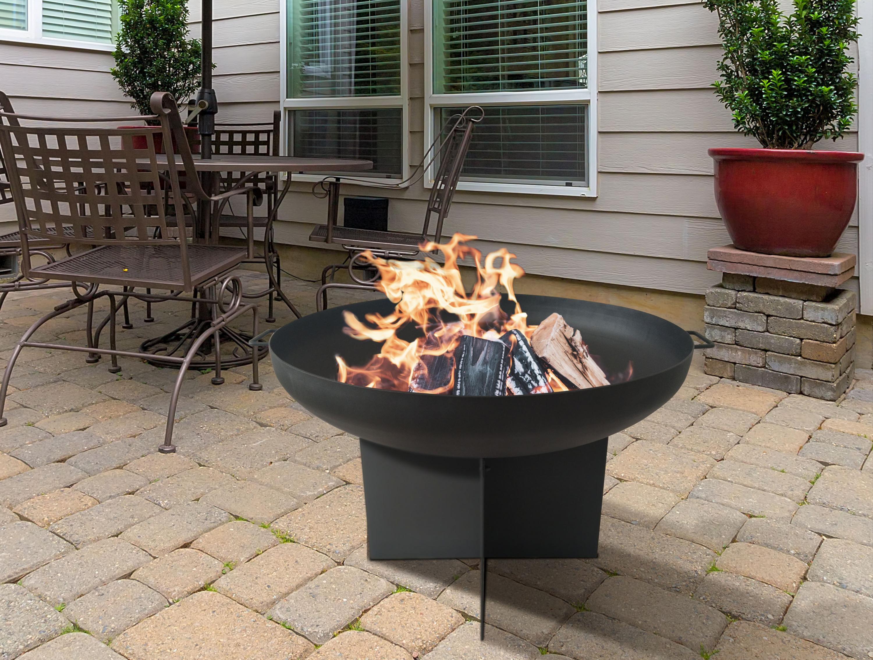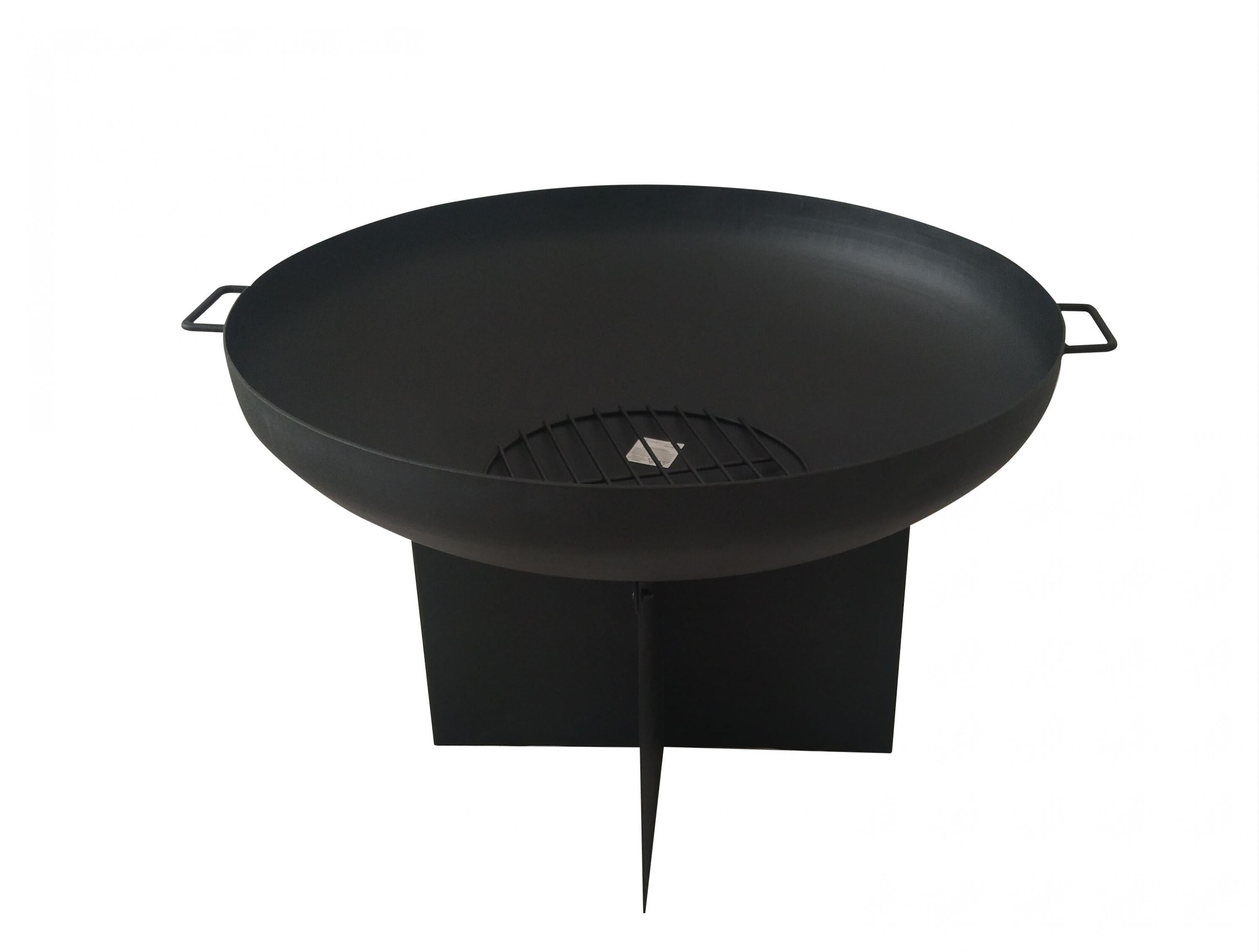 Apto para usar en exteriores, se compone de un brasero circular sostenido sobre un pie en forma de cruz.