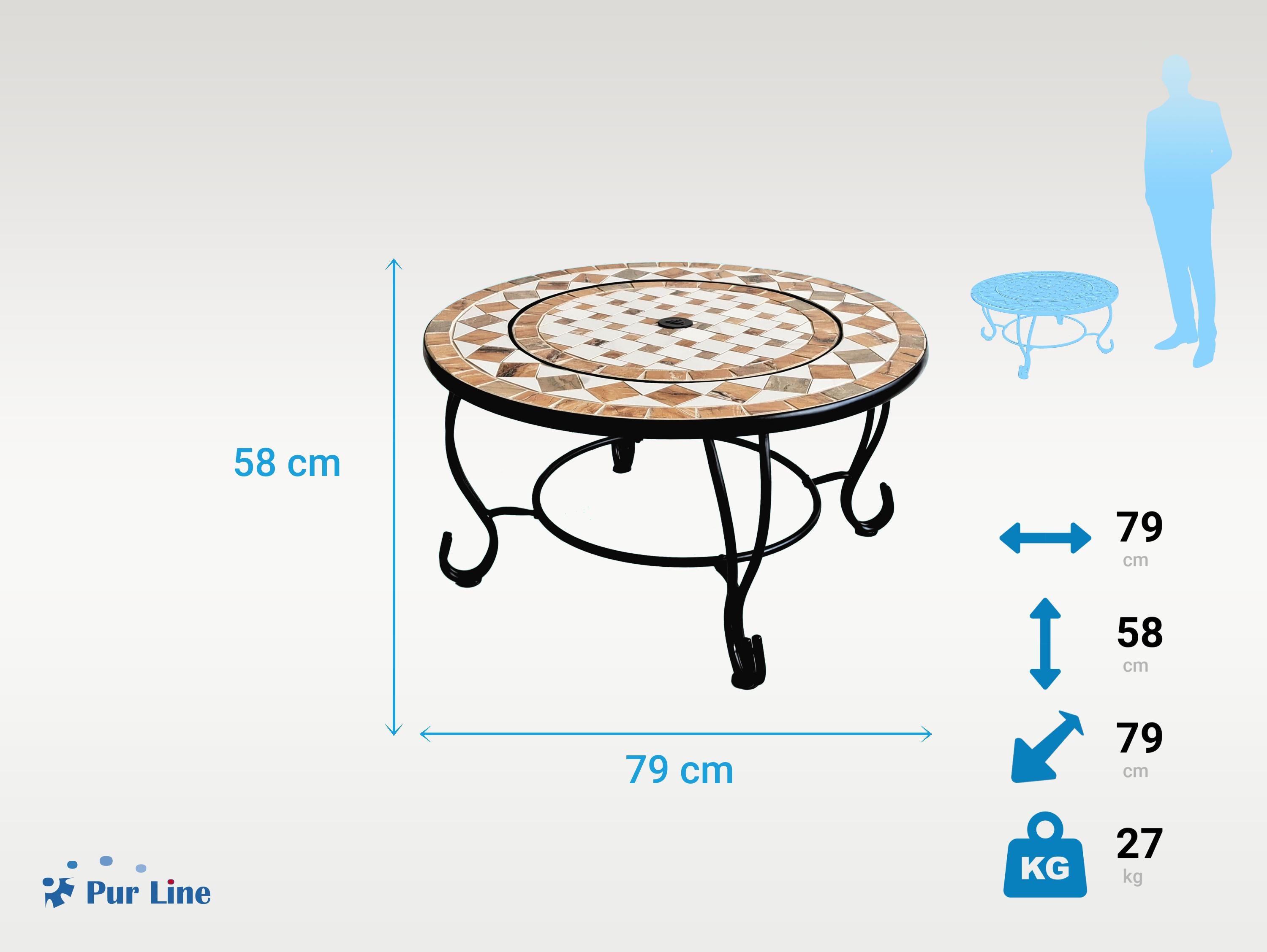 El brasero EFP54 de Purline combina la utilidad de una barbacoa con el calor de una estufa. Un producto 2 en 1 que funciona con leña o carbón vegetal y que puede utilizarse como cocina o como fuente de calor.Apto para usar en exteriores, su práctico diseño en forma de tablero redondo fabricado en acero cromado y losetas de cerámica, dispone de un brasero central para la leña y una tapa protectora contra las chispas. Además su diseño rústico en tonos cálidos aportará un toque único a tu hogar.Su tamaño (LxPxH: 79x79x58 cm) y solidez (27kg) te permitirán llevarlo allí donde necesites, siendo garantía de seguridad, calidad y disfrute. Su montaje y limpieza no te supondrán un problema.