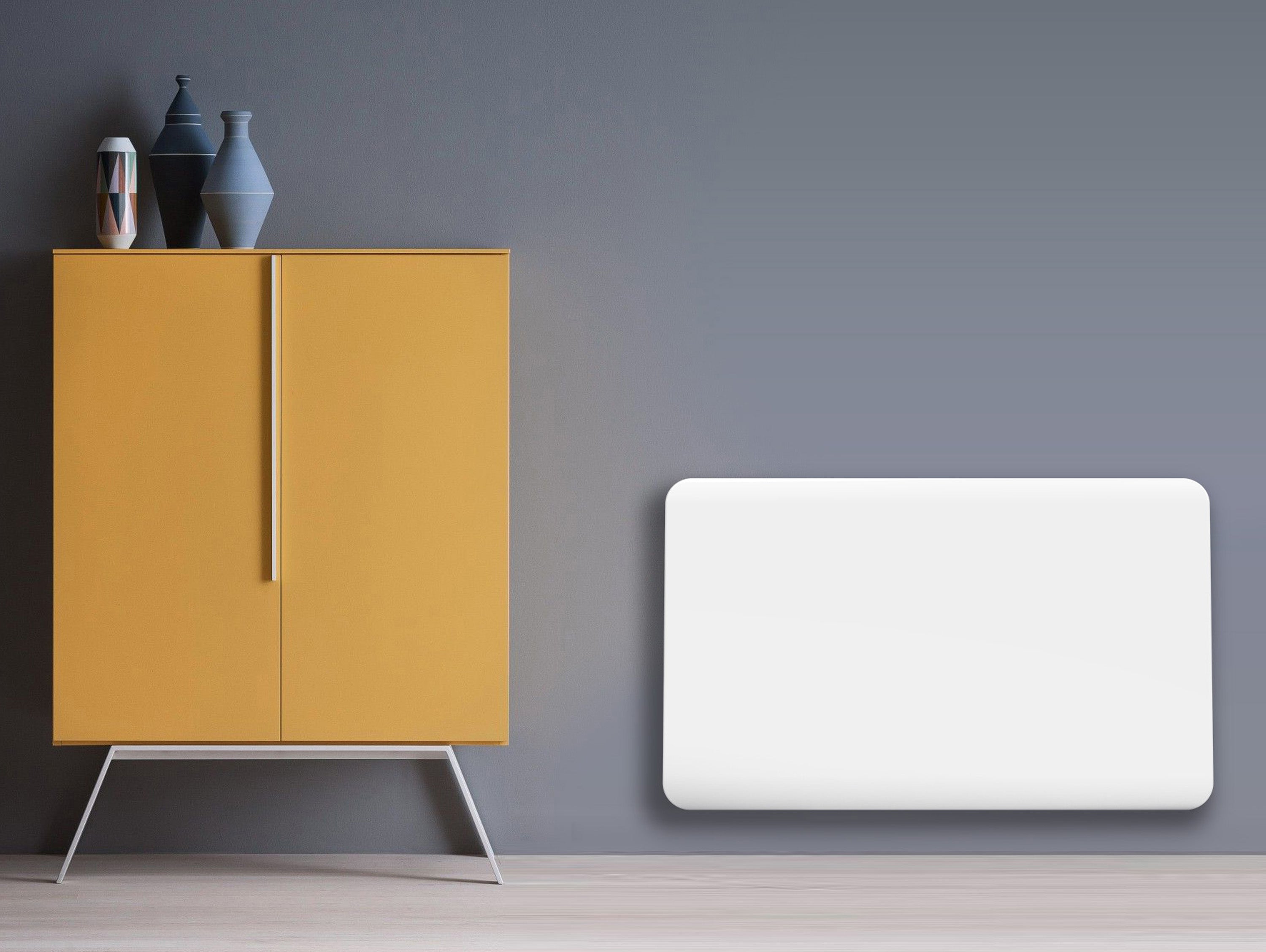Emisor digital con placa cerámica de 1500W. Dispone de control WIFI. pantalla LCD con 4 modos de funcionamiento y 9 programas preinstalados. Diseño blanco rectangular de 82x9x50 cm. ideal para estancias de hasta 20m2.