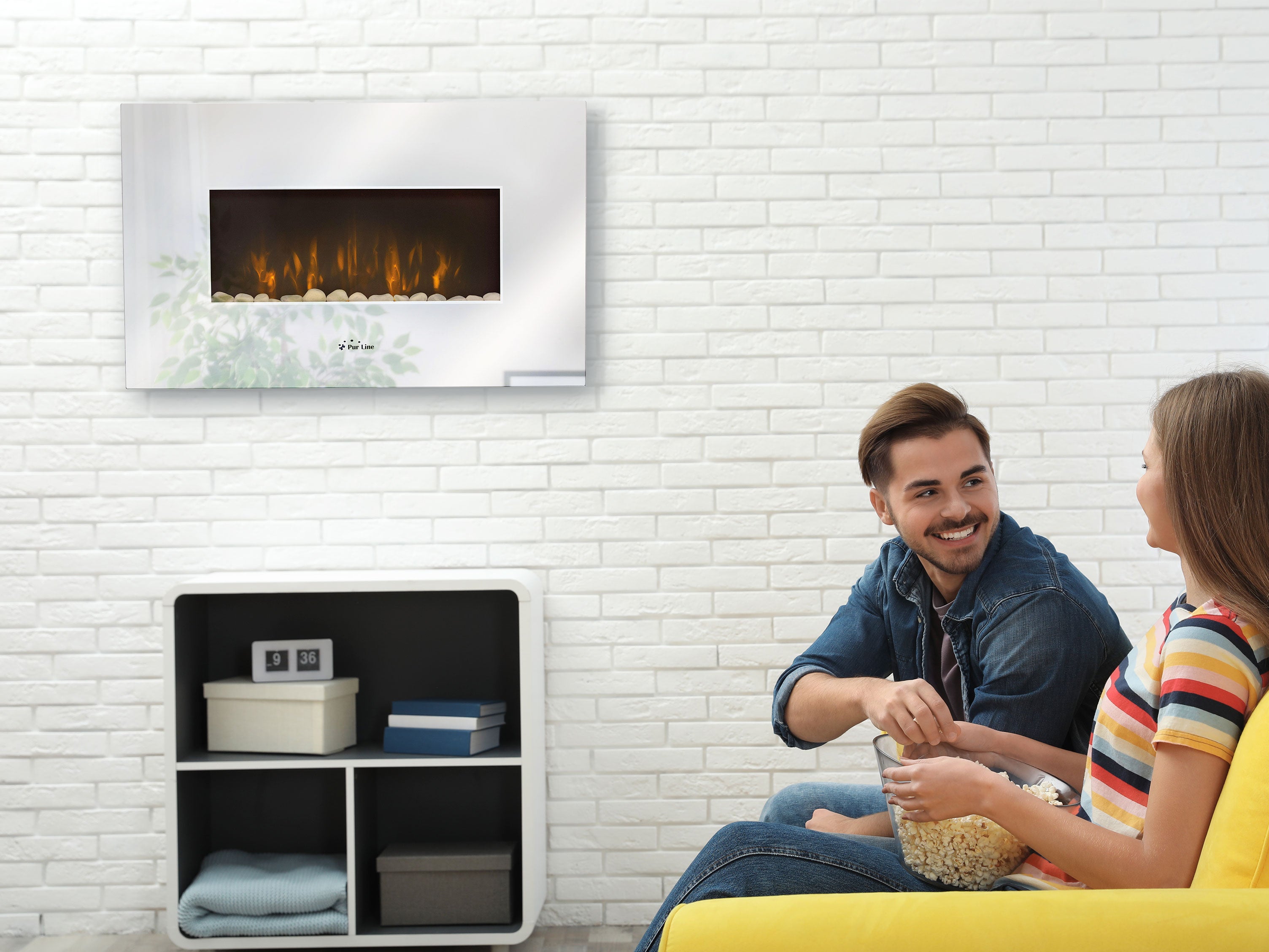 Para instalar la chimenea eléctrica solo necesitas un espacio adecuado en tu pared y una toma de corriente cercana. El producto incluye todo lo necesario para su montaje, lo que facilita una instalación rápida y sencilla, como si colgaras un cuadro.