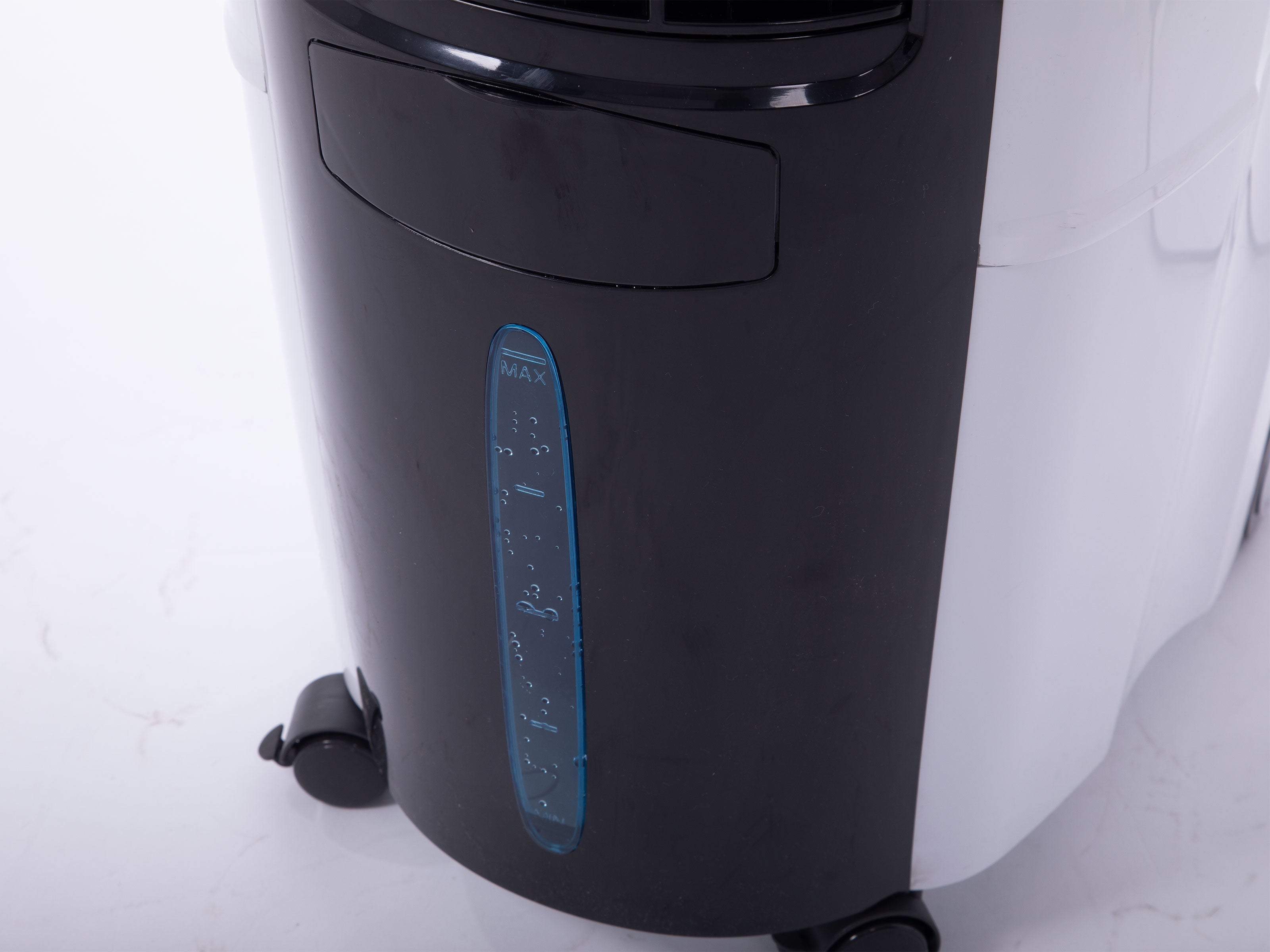 El climatizador utiliza una tecnología de enfriamiento evaporativo avanzada. Absorbe agua de su depósito de 30L y, mediante un panel evaporativo de celulosa e ionizador, enfría y expulsa el aire, refrescando el ambiente de manera eficiente y ecológica.