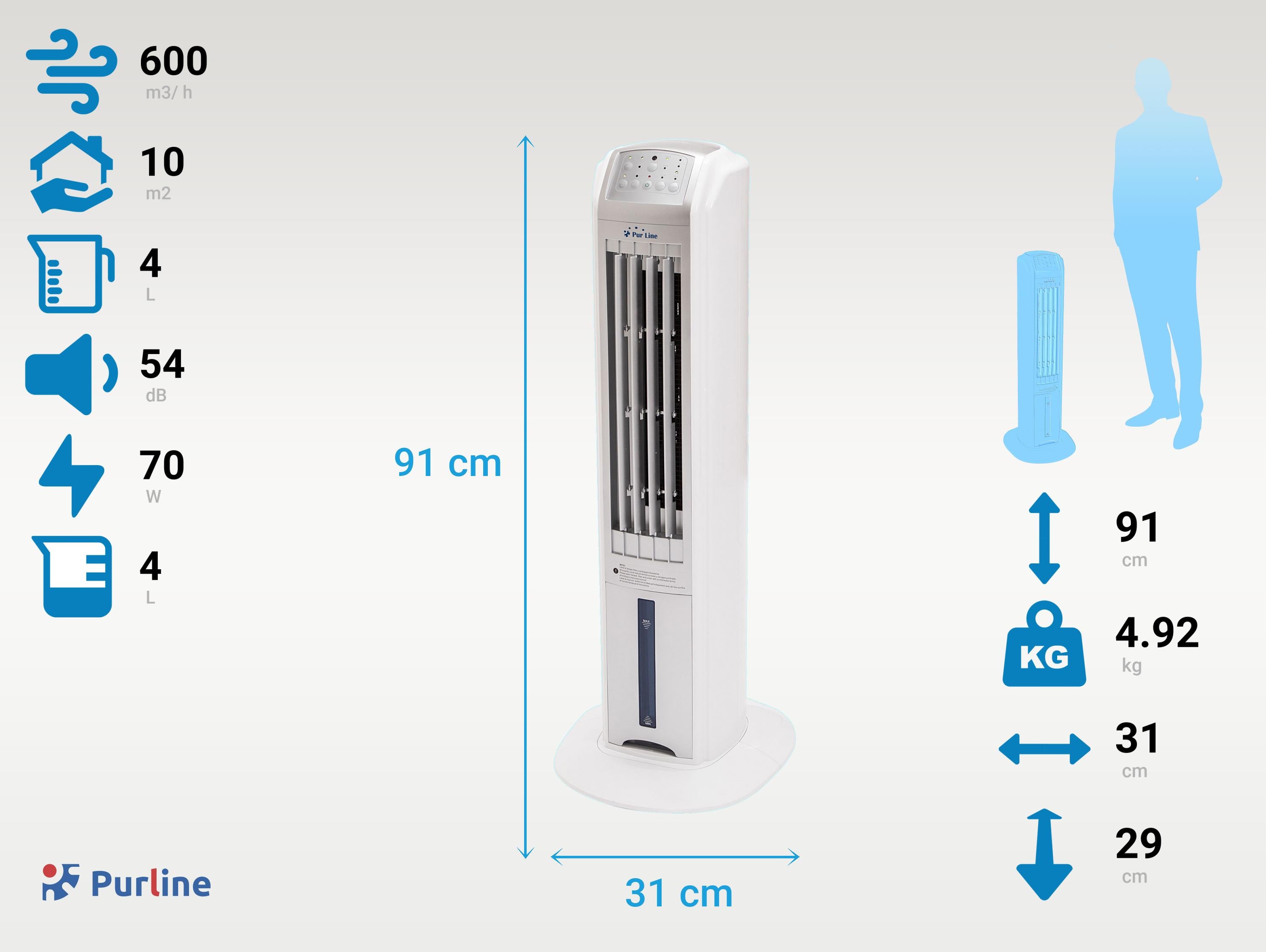 Además de enfriar, este climatizador mejora la calidad del aire con su función de humidificación y purificación, gracias a su ventilador e ionizador incorporado, proporcionando un ambiente más agradable y saludable.