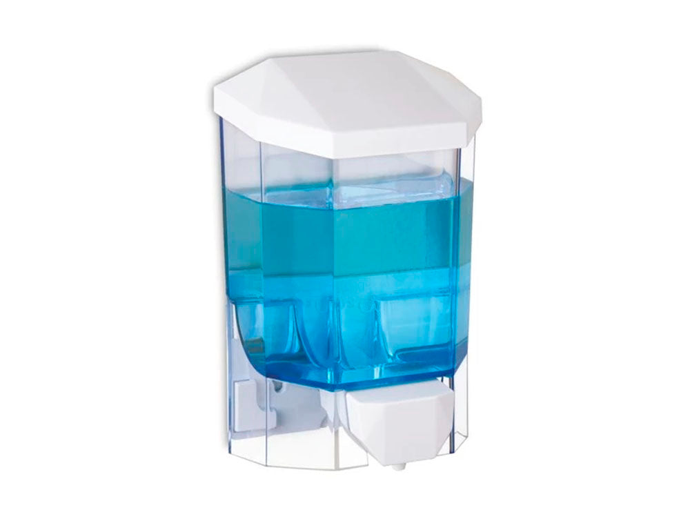 El F086 es un dispensador de 1000 ML de capacidad, con pulsador manual y especialmente indicado para jabón de manos o gel hidroalcohólico.