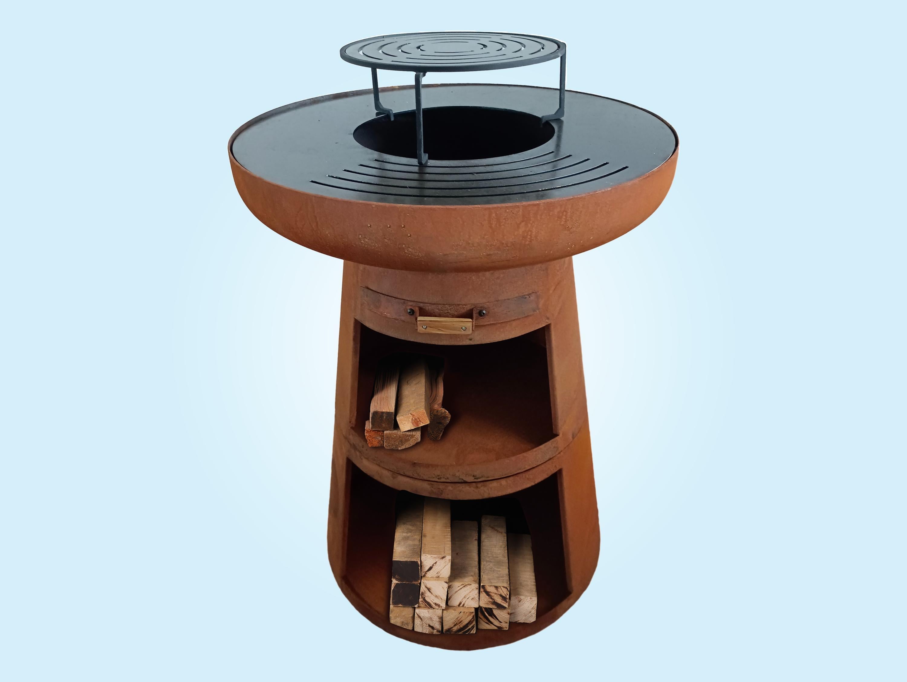 El acero corten utilizado en su fabricación es un material único que no solo aporta un enfoque moderno a la barbacoa, sino que también proporciona protección al acero. Su apariencia oxidada se debe a un proceso en el que se le aplica en fábrica un tipo de ácido, resultando en una capa de óxido que protege el acero subyacente de la corrosión y los elementos. Este acabado no es solo estético, sino que garantiza la durabilidad y resistencia del material a largo plazo.