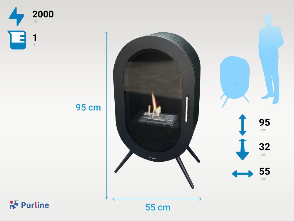 Las estufas de bioetanol de Purline son la unión perfecta entre sencillez y funcionalidad. Su estilo clásico y su avanzada tecnología convierten a este producto en un electrodoméstico indispensable para tu hogar. Fabricada en acero negro, funciona gracias a un alcohol de origen natural y alto poder energético que genera llamas reales, ofrece una sensación de calor inmediata y es totalmente independiente de cualquier otra fuente de energía. La REA tiene un diseño retro y puerta con cristal templado. Podrás instalarla en cualquier estancia de tu hogar, no necesita obras ni salidas de humo. Sus dimensiones son de 50x28x99 cm, además incluye un depósito de 1L fabricado en acero inoxidable para garantizar su resistencia y seguridad. Este modelo combina eficiencia y seguridad, no genera humos ni cenizas, es de fácil mantenimiento y puede usarse tanto en interior como en exterior.